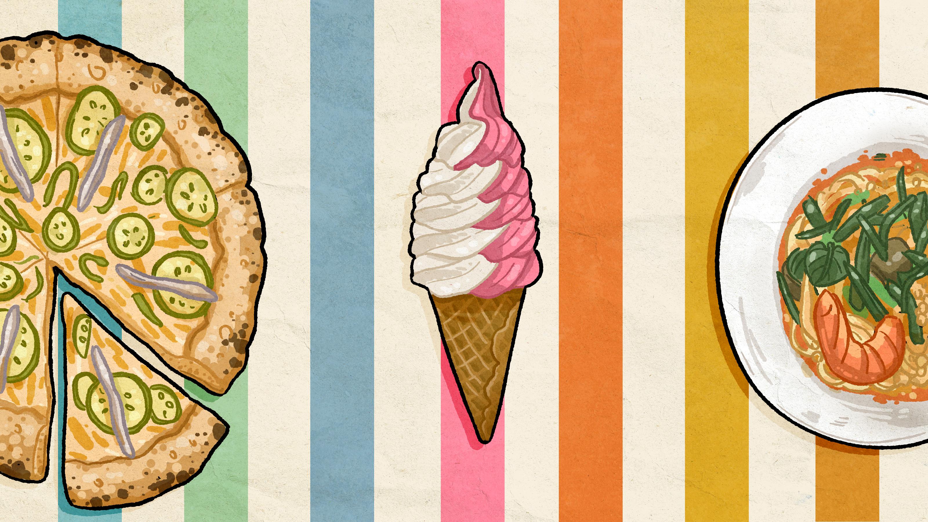 At this point, the fascination with soft serve is less a food trend and more a mode of conduct. Trends fade, but it’s become impossible to deny soft serve’s perfect triangulation of texture, architecture, and baked-in nostalgia. It’s a scientific marvel: fat, sugar, (but mostly) air, held together at temperatures just below freezing, suspended in a sort of old-world church spire construction. There is a whole lot of meaning embedded in what is essentially a miniature rain cloud of fat; it’s a perfect creative vehicle for cooks of all backgrounds. At Kem CoBa, it comes in two complementary flavors, specifically designed to swirl, that change whenever Phan and her partner Vincent Beck feel like it (roughly every two weeks). Clouds had begun to form by the time we got our ice cream; there would be heavy rain in a few hours. The almond and raspberry swirl on the menu was a perfect farewell to summer.