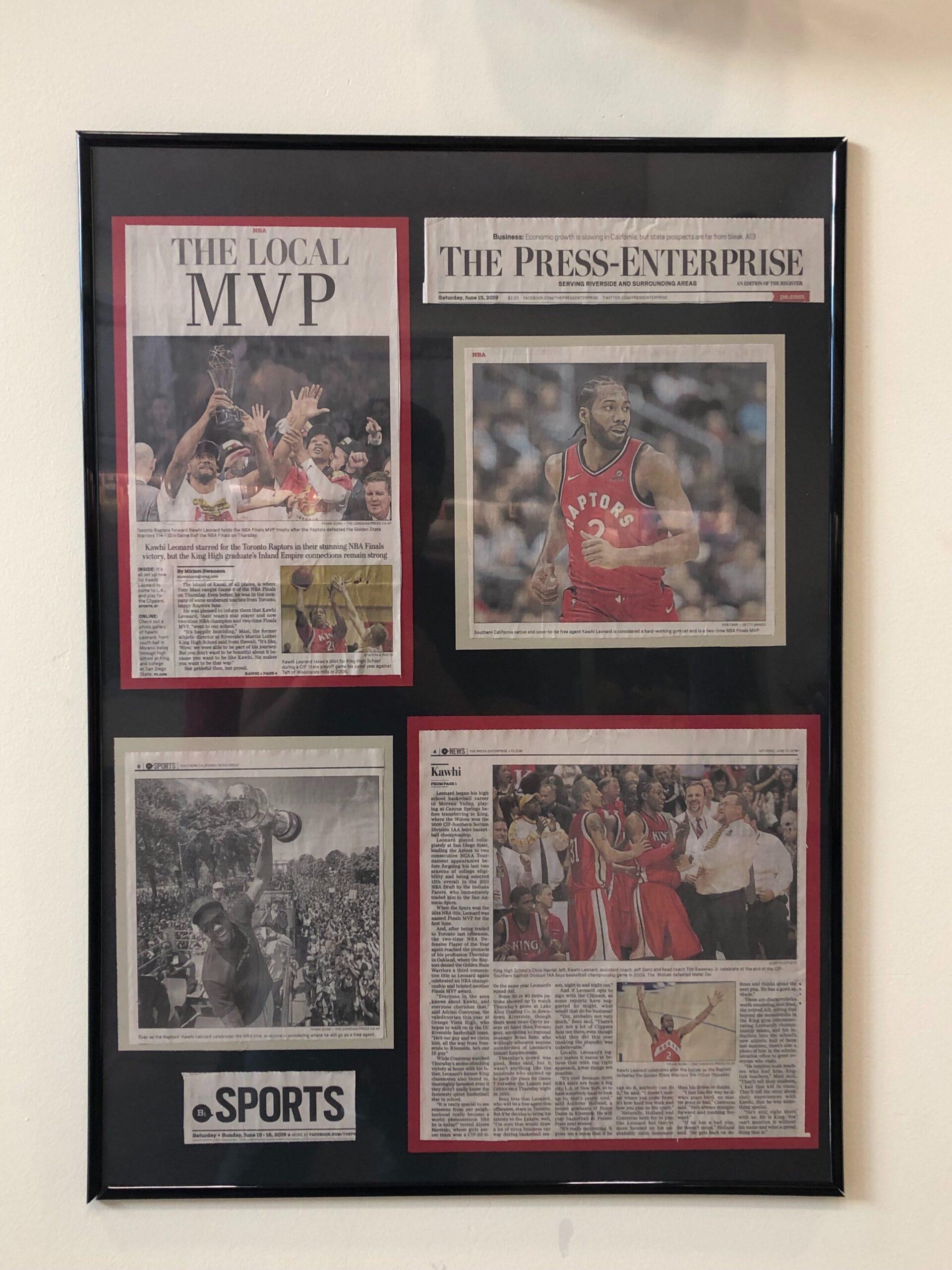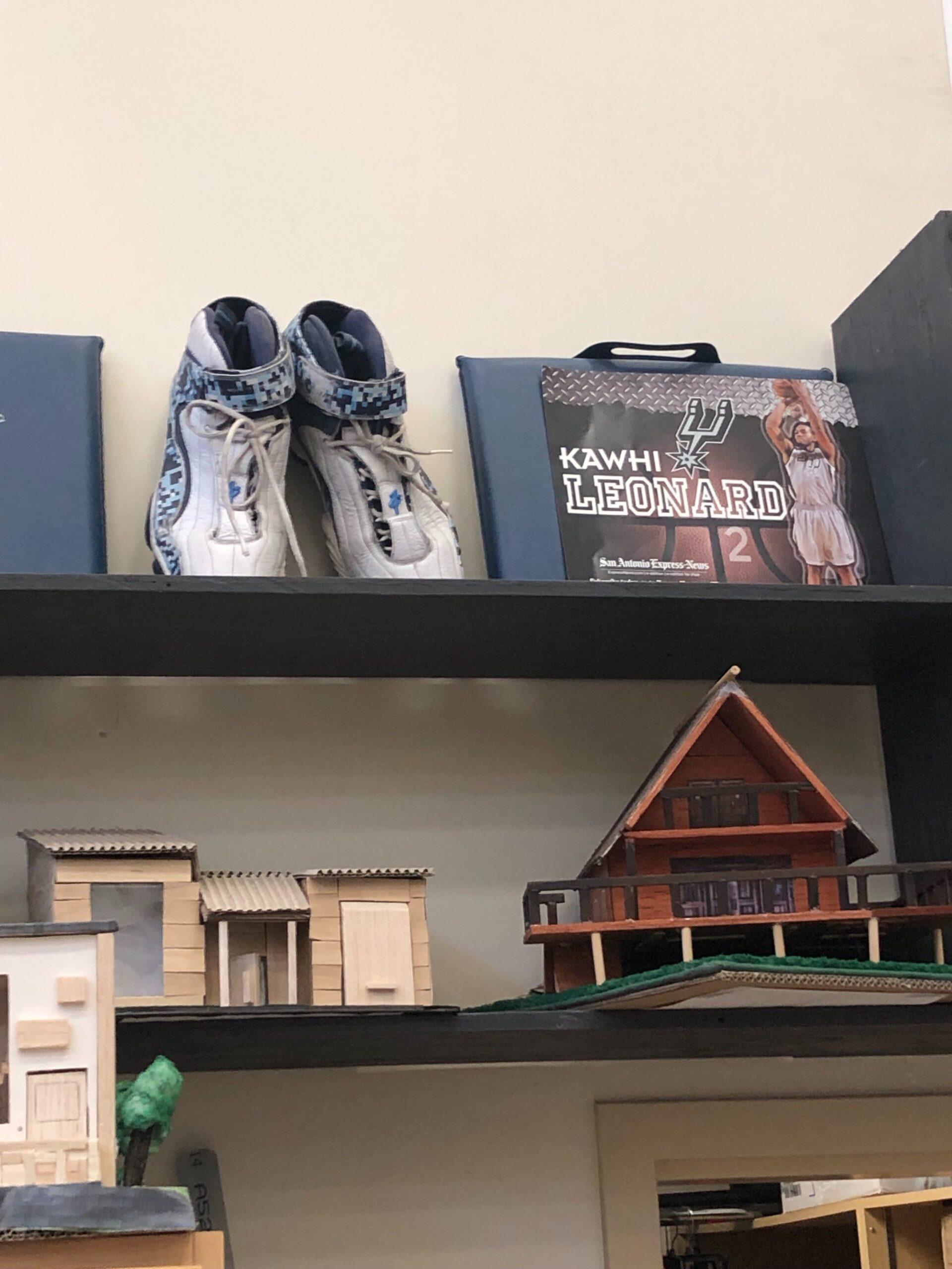 Sweeney chuckles at a memory of LeBron wincing at the free throw line when he saw Leonard checking back into the game during Game 5 of the 2013 Finals. A year later, Leonard locked LeBron down in Game 3 of the Finals and went on to win Finals MVP. And when Leonard signed a shoe deal with New Balance last November, former King High assistant coach Jeff Dietz couldn’t help but recall Leonard’s confused face when a Nike shoe rep gave him brand-new sneakers before the team’s California Interscholastic Federation final upset win over Mater Dei at the Honda Center in 2009. In his classroom at King today, Dietz keeps a pair of old, worn, blue-and-white basketball sneakers that Leonard left behind. They’re perched on top of a bookcase next to a Spurs poster of him, like a makeshift altar.