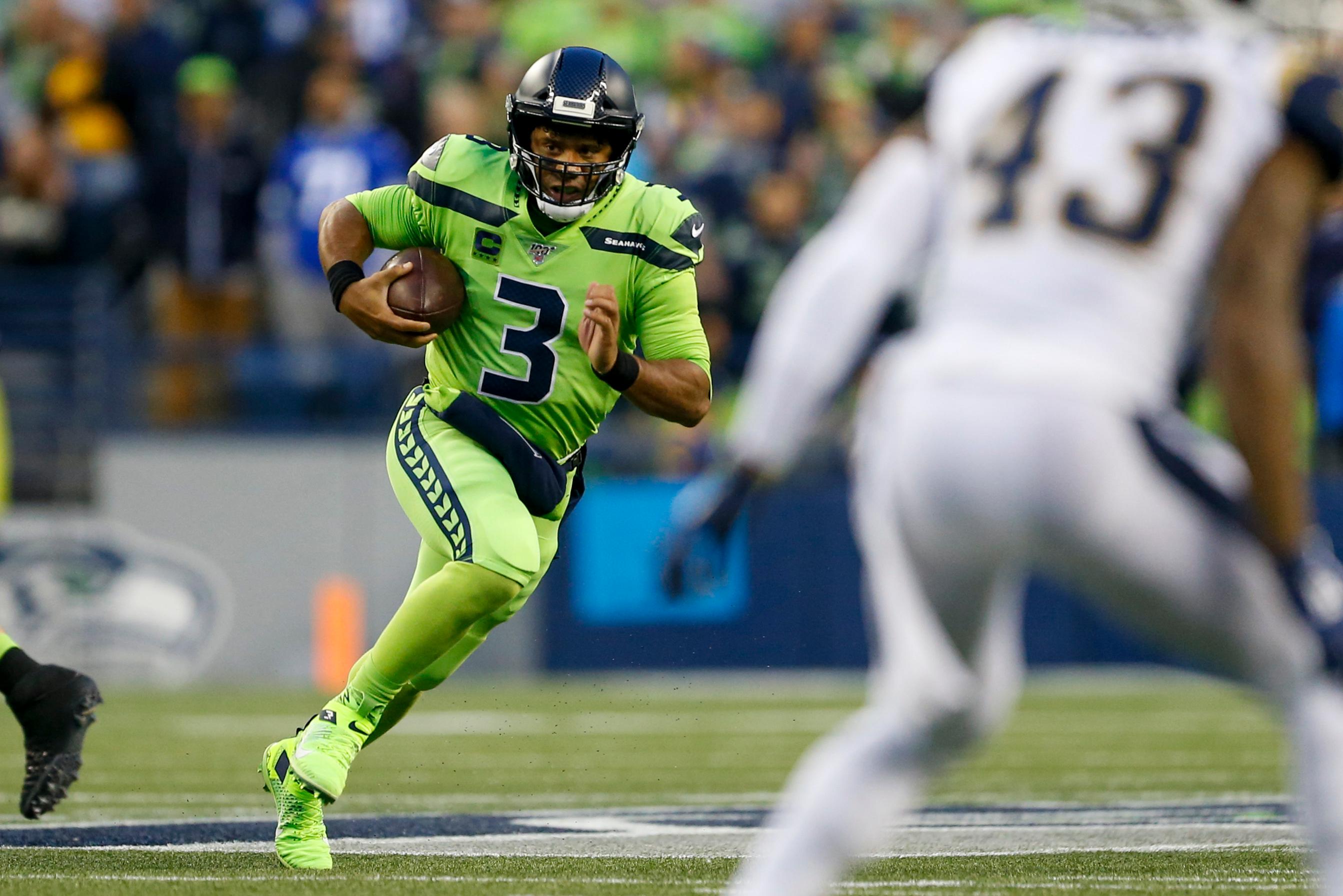 With one minute left in the first quarter, Russell Wilson took a first-and-10 snap from the Rams’ 13-yard line, faked a handoff, and then surveyed the field. He rolled left but threw the ball under pressure.