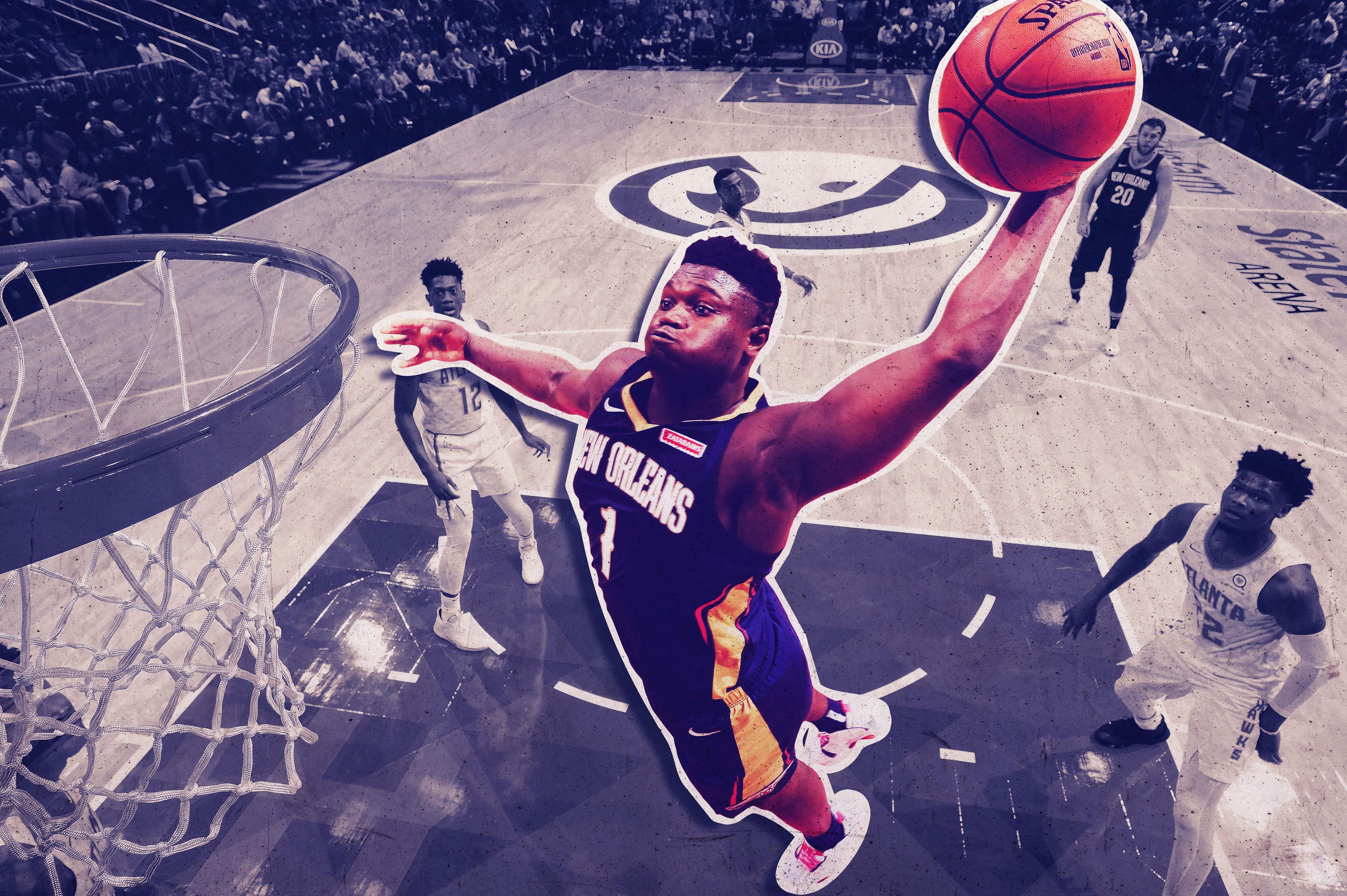 I have always been fascinated by avalanche videos. OK, stay with me. You know the ones I’m talking about—those where a snowboarder the size of an ant is sliding down a mountain trying to outrun literal tons of snow barreling down on him at breakneck speed. I always wonder whether and how they get away because I can’t imagine how helpless I’d feel in that same position. I can only imagine that’s a little how bit Damian Jones felt on Monday night, and how every other NBA player will feel this season, when he tried to get in the way of basketball’s newest, holiest union: Zion Williamson and the rim.