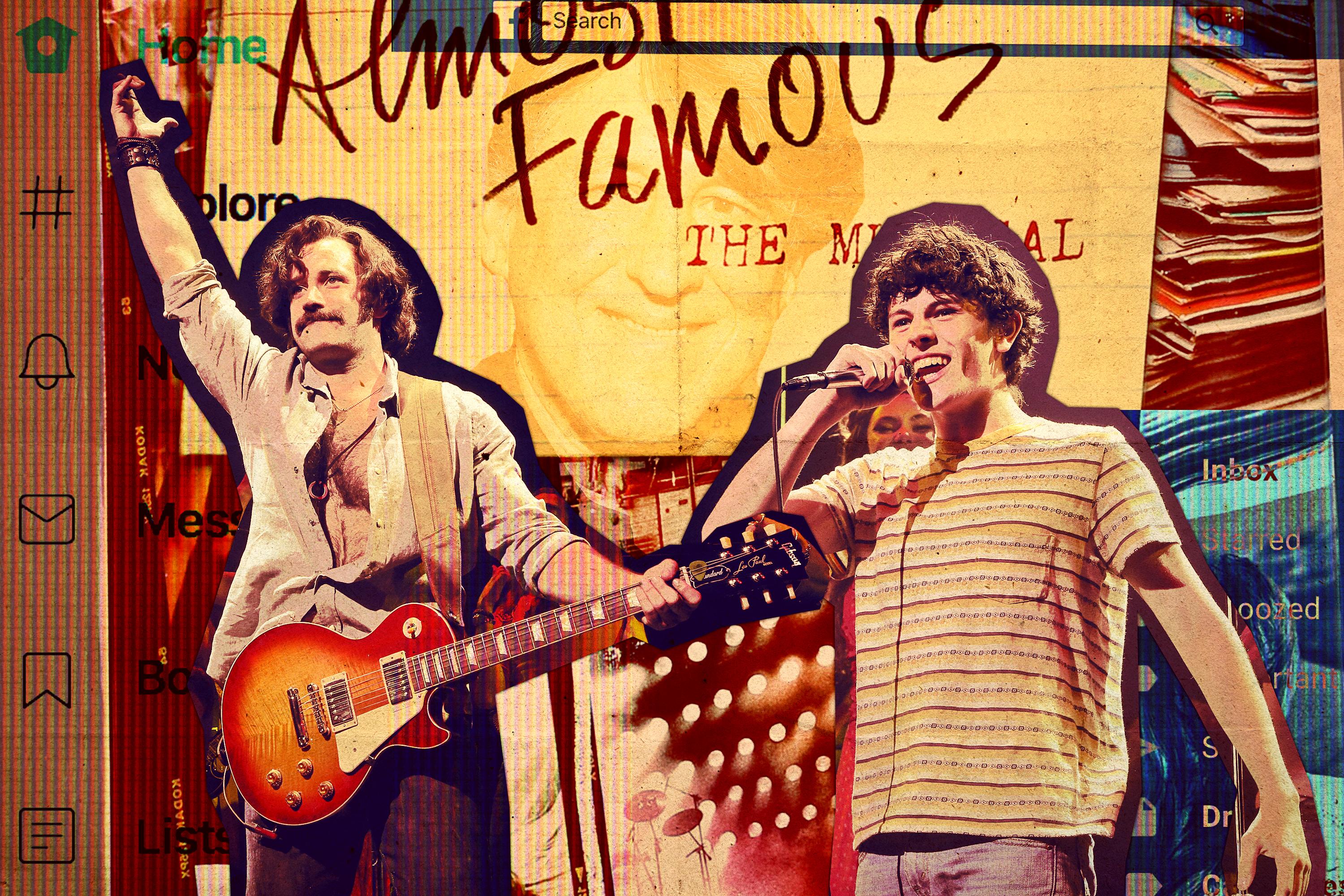 And so the obvious joke is to give Almost Famous the same kind of gritty reboot to which so many pieces of existing IP are subjected: William Miller is now a 22-year-old NYU grad with $100,000 of student loans, pumping out three news posts a day for BuzzFeed when one goes viral … before he can delete all of his problematic Chief Keef tweets from college. Stillwater is a synth-y duo named STLLWTR trying to defy their reputation as industry plants. The “elder statesman” voice of Lester Bangs is now some variant of Robert Christgau pumping out reviews in the netherlands of Vice well into his 70s or a bitter lifer going on long tangents about the insanity of a culture that favors Tame Impala over Iceage.