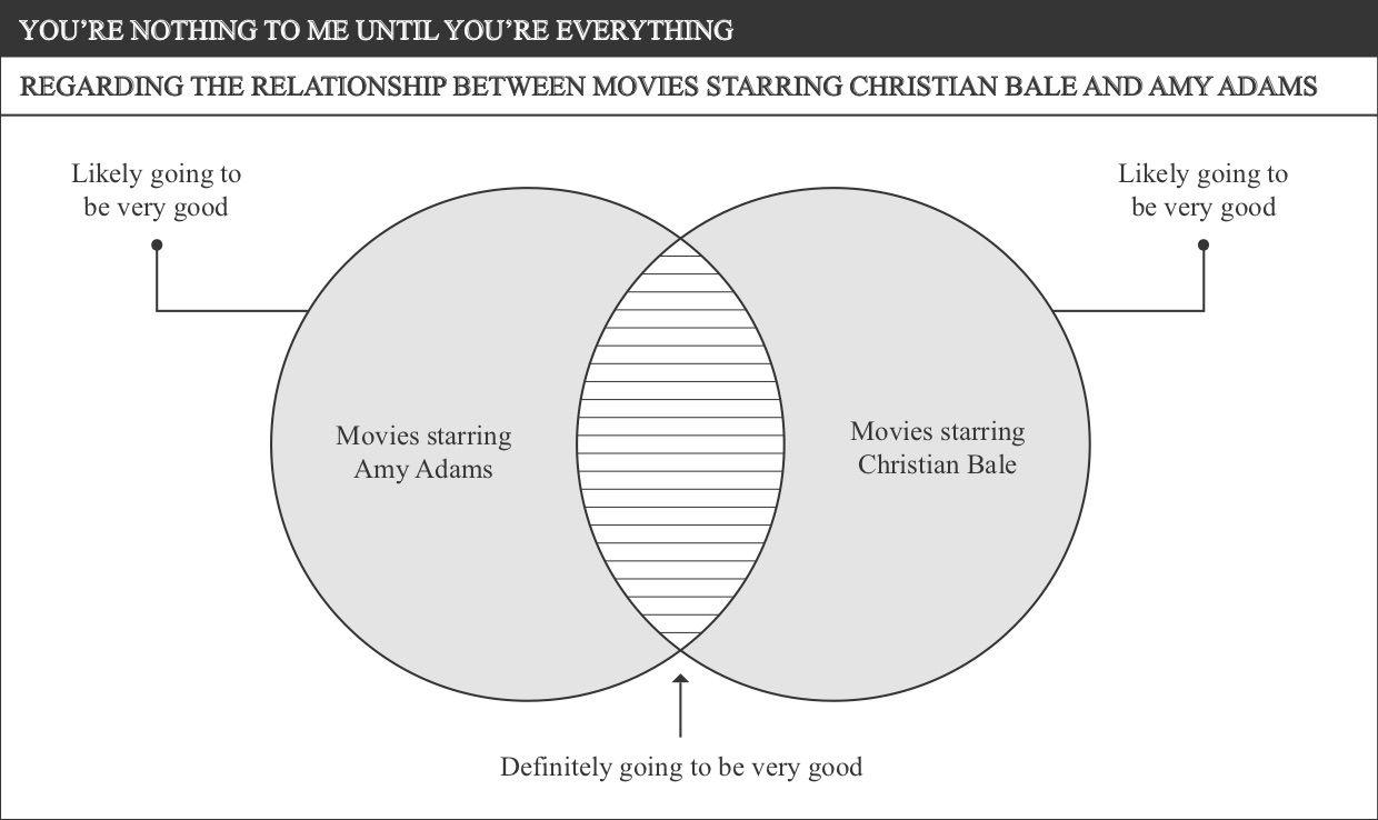 A good bit of trivia is: Every time Christian Bale has appeared in a movie with Amy Adams, he has received an Academy Award nomination. He received a Best Supporting Actor nomination when they were in The Fighter together in 2010 (he won it that year). He received a Best Actor nomination when they were in American Hustle together in 2013 (he lost to Matthew McConaughey, who was magnificent in Dallas Buyers Club). And he received a Best Actor nomination when they were in Vice together in 2018 (he lost to Rami Malek, who played Freddie Mercury in Bohemian Rhapsody, but if he was going to lose to anybody he should’ve lost to Bradley Cooper as Jackson Maine in A Star Is Born). The only time Bale has received an Academy Award nomination for a movie that Adams wasn’t in was when he received a Best Supporting Actor nomination for 2015’s The Big Short, but Steve Carell was in that, and Steve Carell and Amy Adams were in an episode of The Office together, so I figure Carell probably had just enough of Amy Adams’s energy on him to activate Bale’s senses.