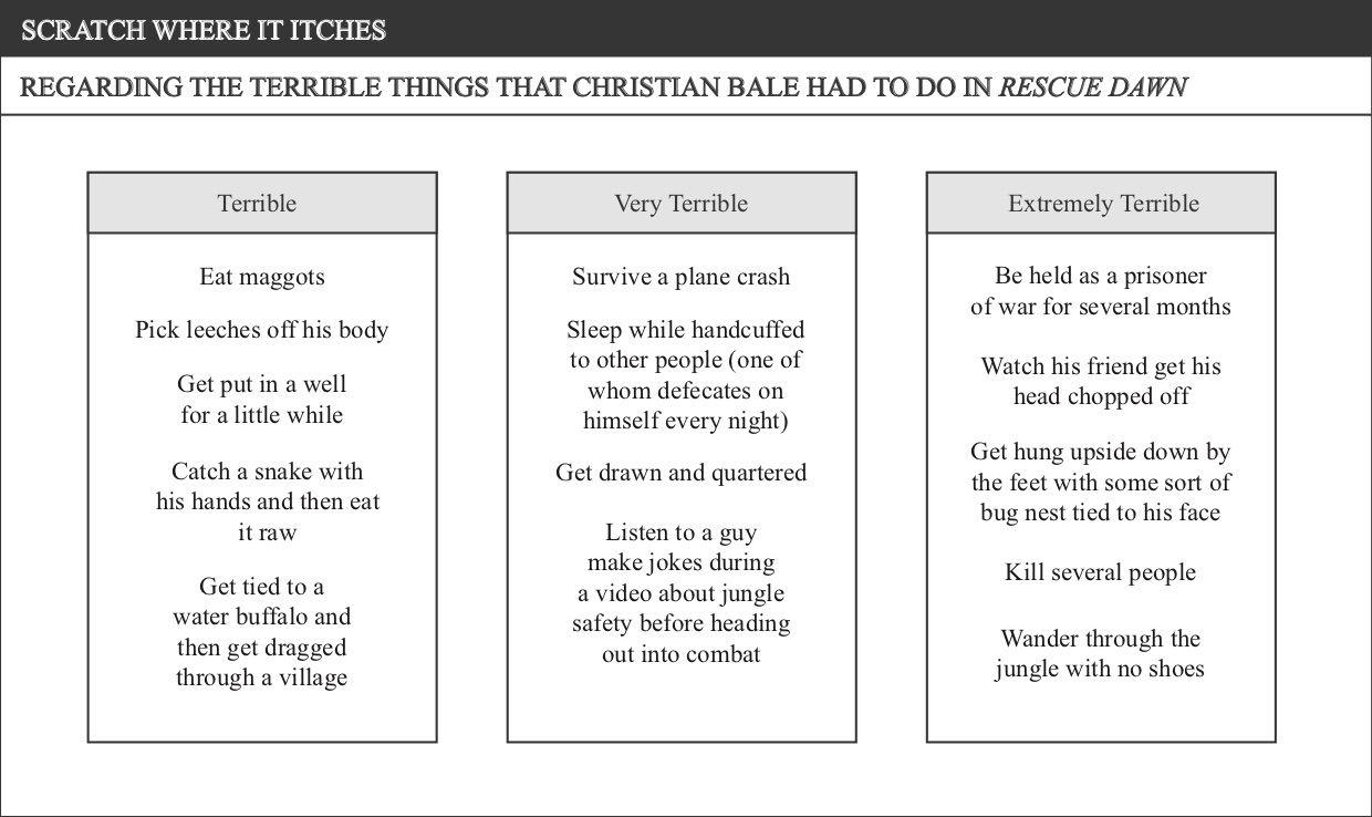 Anyway, in Rescue Dawn, a movie where Christian Bale plays a pilot whose plane gets shot down and he becomes a prisoner of war for several months, many terrible things happen to Bale, none of which are more horrifying to watch than seeing him have his shoes taken away by the Viet Cong.