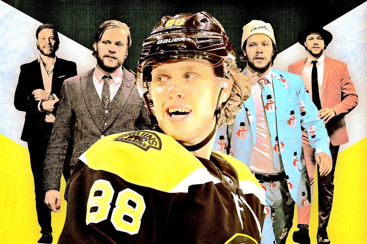 He starred in a surprisingly not-annoying Dunkin Donuts commercial last season, managing to imbue the phrase: “Hey ref, check your voicemail, you missed some calls!” with affable charm. He walked around Shanghai on ice skates during one visit and got a piggyback ride from Brad Marchand on the Great Wall during another. (One of Pastrnak’s endorsements is a Chinese “sweet milk for kids,” after he was noticed by a foreign businessman both for his skill and for his lucky number, 88.) He wears suits that look like windowpanes, or confetti, or upholstery, or salmon. And when he suits up for the Bruins, who selected him as a late-first-round pick, he is one of the top players in the whole National Hockey League.
