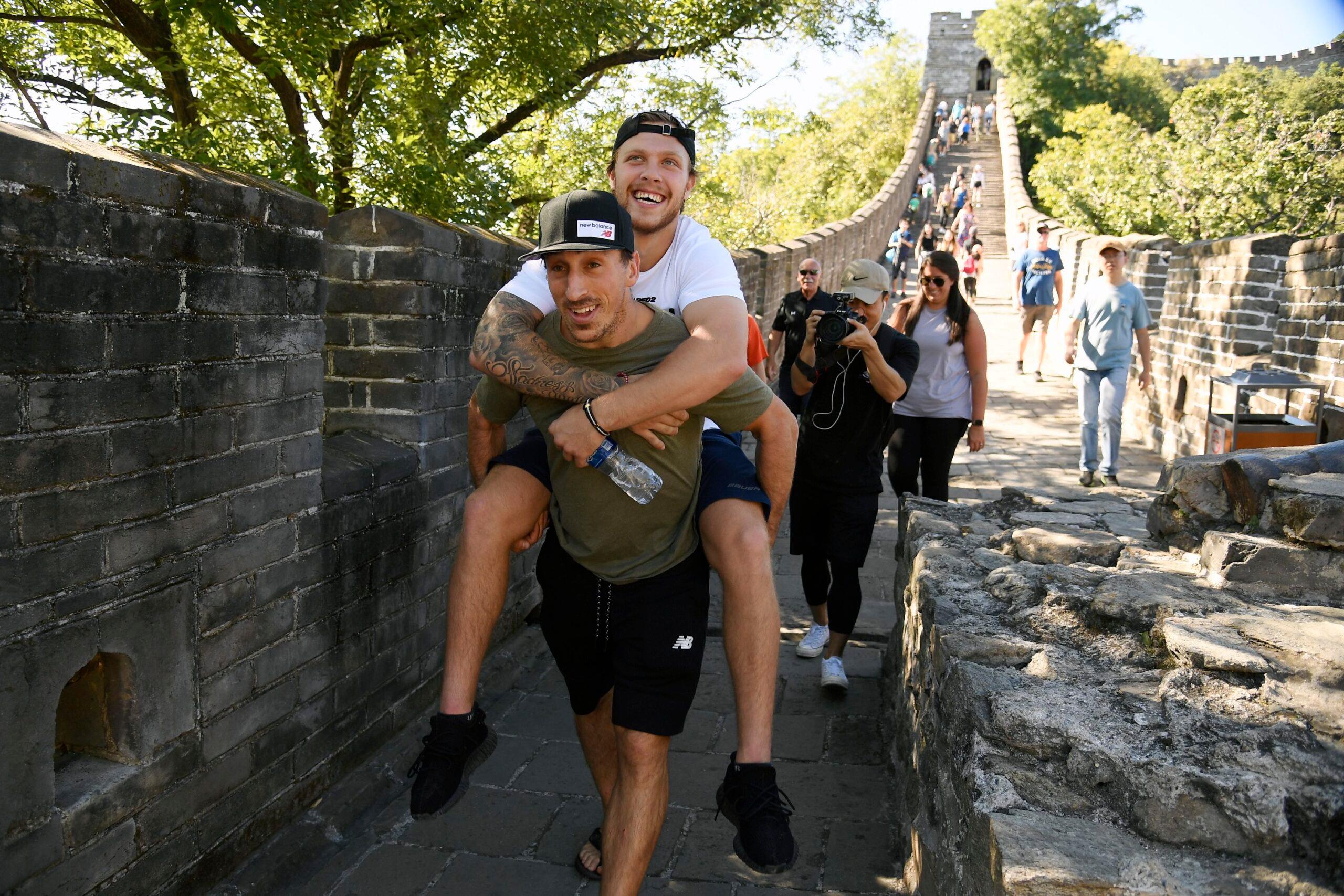 Brad Marchand and David Pastrnak at the Great Wall of China