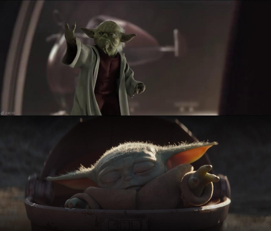 That seemed to support the theory that the infant is a clone of Yoda or Yaddle. The former Jedi council member who commissioned the clone army, Master Sifo-Dyas, could have stolen a tuft of hair or a skin sample from one of the Council members and taken it to the Kaminoans. That would have been a bit before The Phantom Menace, which was roughly 41 years before the events of The Mandalorian. The infant is about 50 years old, so the timing might work. That might also explain why the infant lacks a “chain code,” which seems to be some sort of Star Wars Social Security number. Then again, Pershing might merely want to experiment on a natural-born Force user. For what it’s worth, Yoda is a righty, whereas the infant sometimes (but not always) levitates lefty. But like identical twins, clones wouldn’t necessarily have the same handedness.