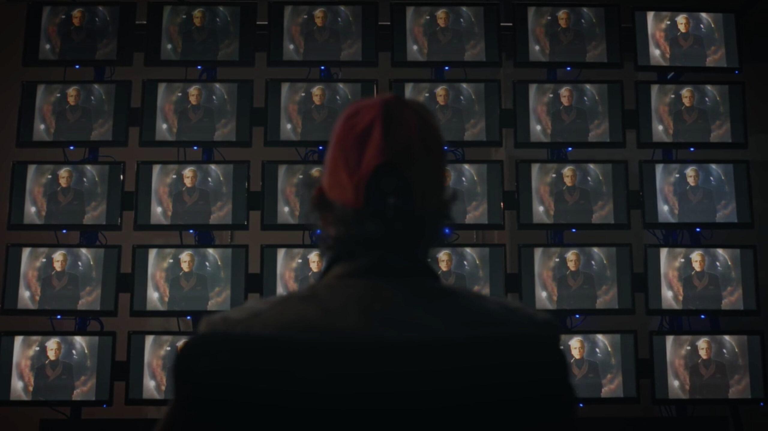 Keene explains that the video he’s about to show Wade was the same one that the U.S. government showed to Keene shortly after he was elected senator and appointed to the Appropriations Committee. He gives Wade another choice: leave now and try to convince the police of what he’s seen, or press play, and “finally be free.” Wade does the latter, and the dozens of screens before him flash the same image of one man: Adrian Veidt.
