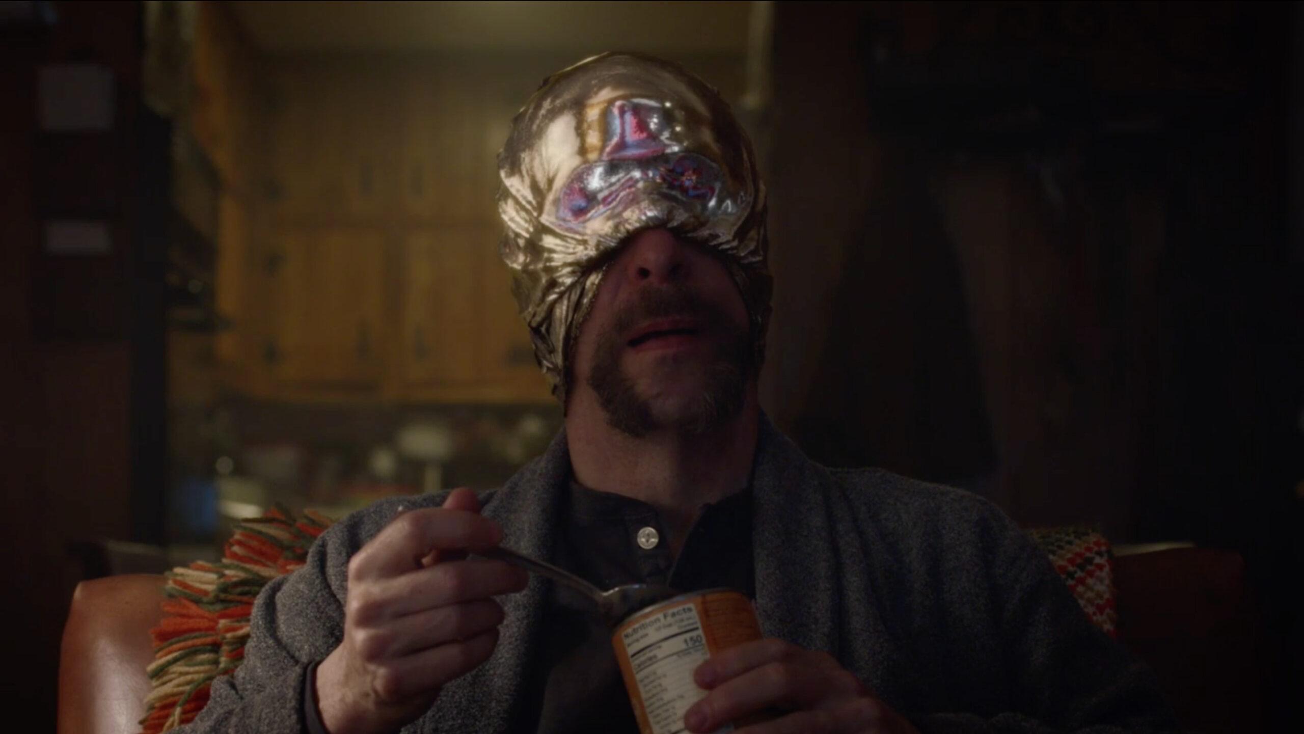 Wade is now a loyal customer of Extra-Dimensional Security, a company that designed an alarm system that runs drills to prepare its users for the next Dimensional Incursion Event (the fancy name for Squid Day), and also produces the reflective material that Wade uses for his Looking Glass mask. (The material supposedly shields its wearers from “psychic blasts” in the event of another massive squid impact; Wade even wears his mask to go to sleep.) We learn that Wade conducts drills with the EDS system every three to four days, where an alarm sounds and he has to run to the shelter behind his house to turn it off. When Wade tells the EDS customer service guy that he’s performed over 500 drills on his current unit, the man is shocked by the figure and reminds him drills are supposed to be scheduled no more than once every six weeks—Wade basically tells him to fuck off and send a new unit. 11/2 also gave Wade trust issues, causing the collapse of his seven-year marriage after his ex-wife grew tired of his fear that she would run off with his clothes in the middle of the night. Wade also leads group therapy sessions for people struggling with extra-dimensional anxiety. Wade’s life is so sad that his theme music is just “Careless Whisper” performed in various ways (the acoustic version is kind of a banger though, I’m not gonna lie).