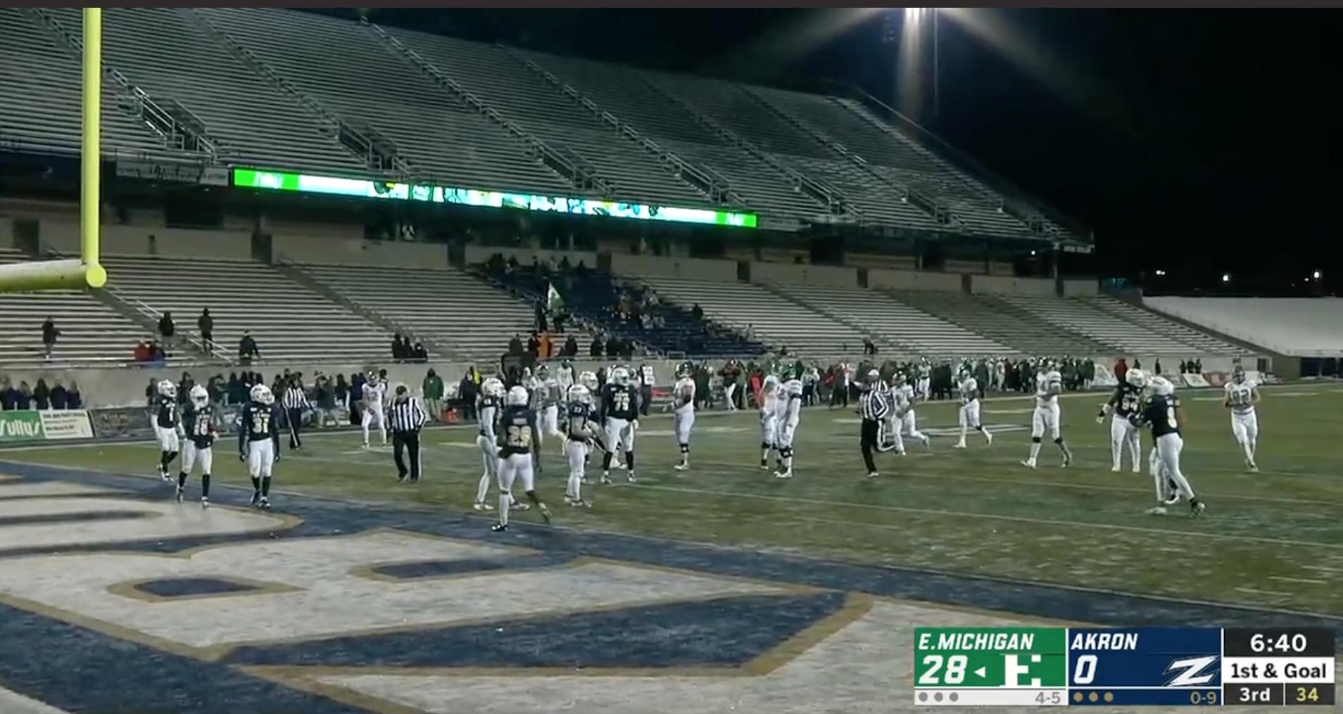 Last week, 0-9 Akron moved its Tuesday-night game against Eastern Michigan up to 6 p.m. due to heavy snow and 22-degree weather. Attendance was listed at 10,811. I am … skeptical of that figure.