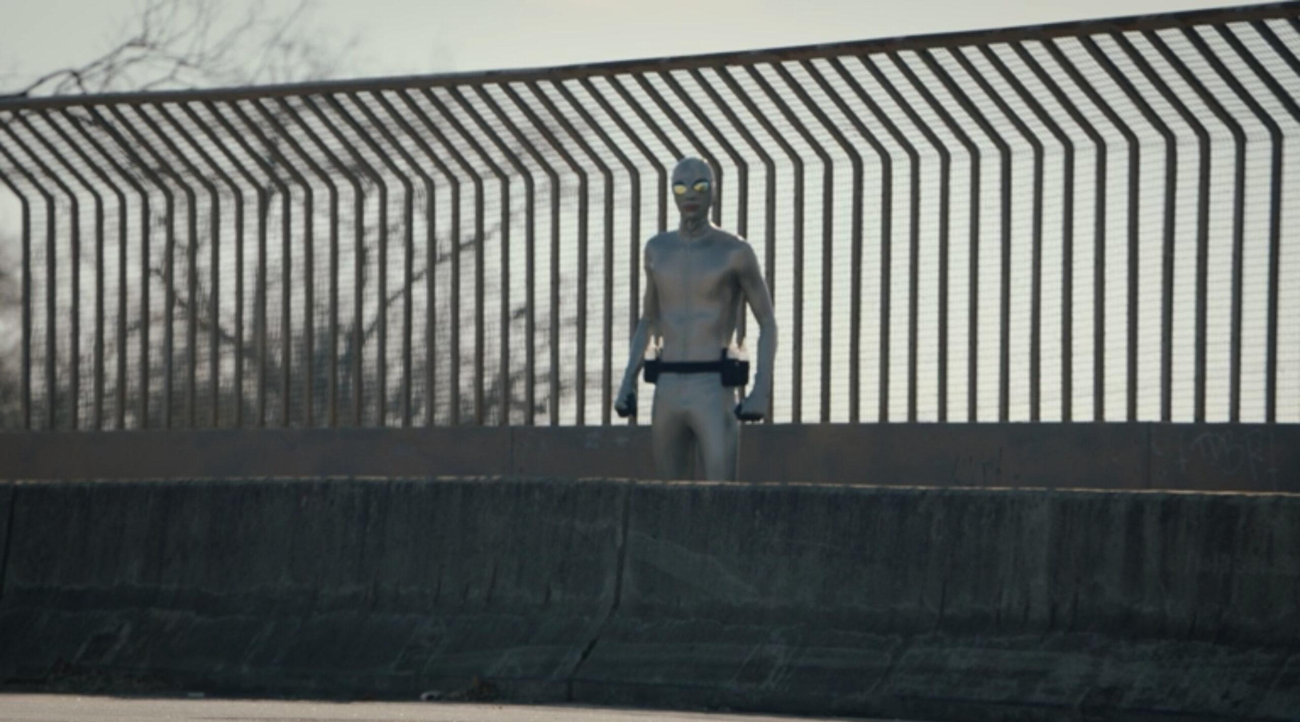 In the fourth episode, as Sister Night is dumping all evidence that could reveal her connection to her grandfather, Will Reeves, she turns around to see a skinny man decked out in a shiny silver suit and swimming goggles staring right at her.