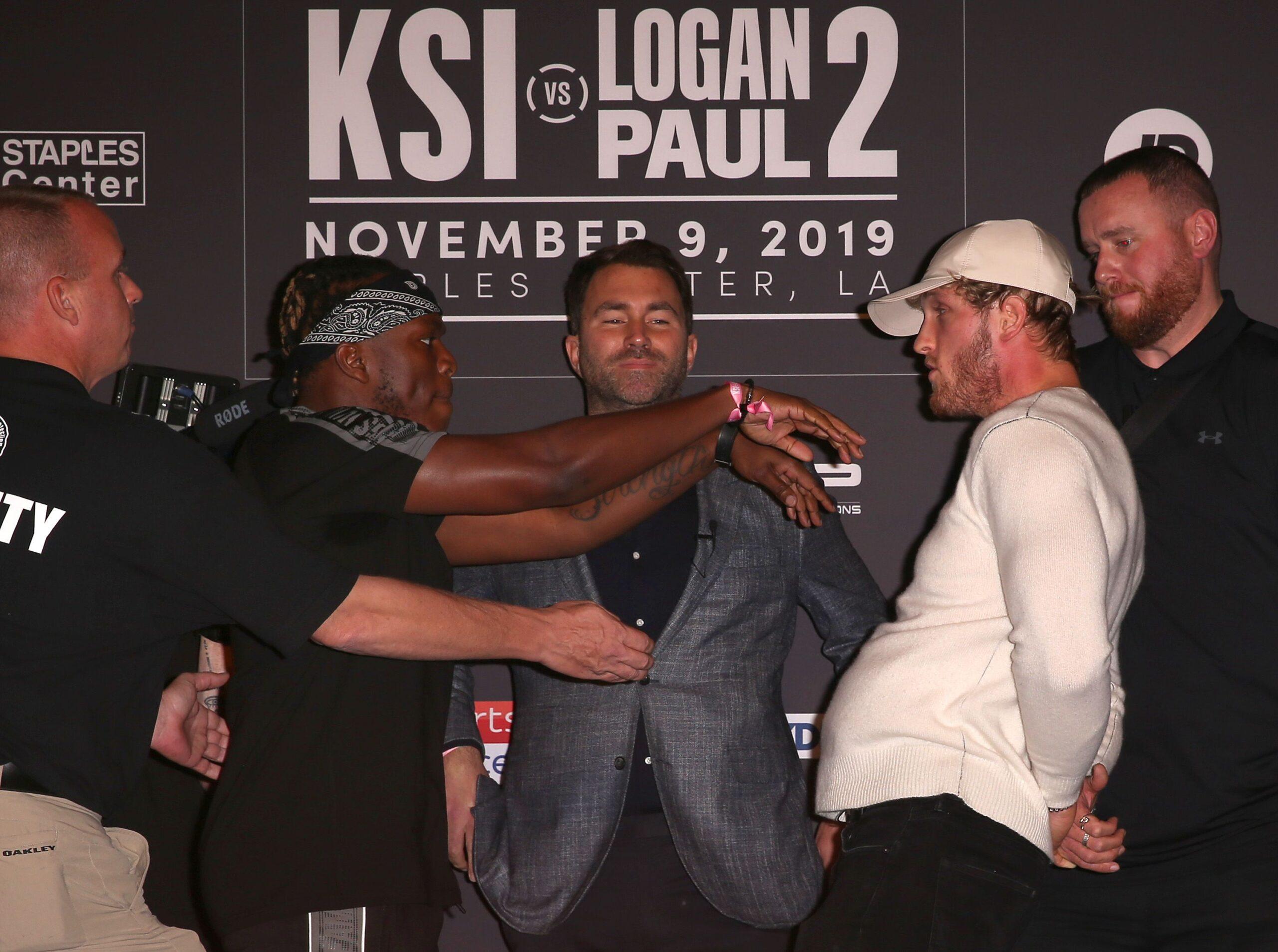 Apparently he saw them, because today Hearn is looming directly behind Paul and KSI as they posture for the press. He pushes them apart after a few minutes, and the headliners retreat to their respective camps on opposite sides of the stage. To the left, KSI’s entourage is muted in black-and-white basics. To the right, Logan’s younger brother, Jake, puffs on a giant cigar in skinny jeans painted with skulls. Logan’s trainer, two-time heavyweight champion Shannon “The Cannon” Briggs, is rubbing his hands, repeating his highly original catchphrase “Let’s go, champ” as often as he blinks. (This directive is also printed in a pattern on his T-shirt.) Hearn, a stout man with a perpetual five o’clock shadow, introduces himself, thanks the crowd for coming, and ticks off the details of the fight: November 9, at Staples Center, “a big, big moment for professional boxing.” He plugs DAZN, the $19.99-a-month sports streaming service that will air the event. (The service is hosting the press conference online, and has already plugged its entire season of boxing, which the company’s executive chairman, John Skipper, has proclaimed “the greatest of all time.” Highlights include a bout between Álvarez and Sergey Kovalev, and a rematch between heavyweights Anthony Joshua and Andy Ruiz.)