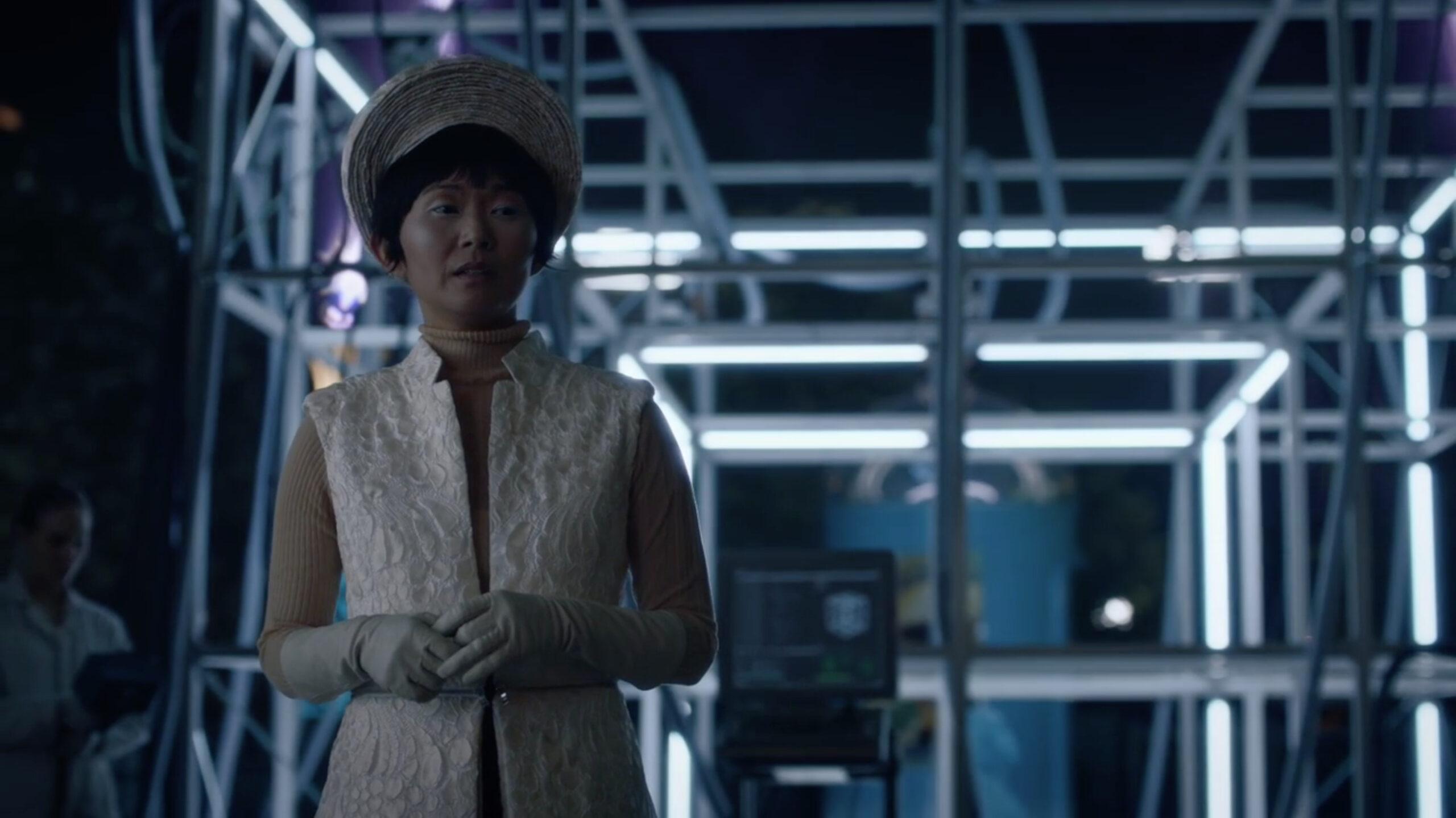 Thirty-three years later, in 2008, the World’s Smartest Woman arrives at Karnak to introduce herself to her father. Without revealing their relationship, Lady Trieu earns herself a trip inside the facility by mentioning the little-known truth behind 11/2 and feeding Veidt’s ego by praising his unappreciated brilliance. Trieu briefly acts impressed by Adrian’s squidfall technology before calling it nothing more than a “rerun” and sharing a world-saving plan of her own: to destroy Doctor Manhattan and absorb his abilities. “If I can take his power, I can fix the world,” she tells Adrian. “Disappear the nukes, end starvation, clean the air. All the things he should’ve done.”