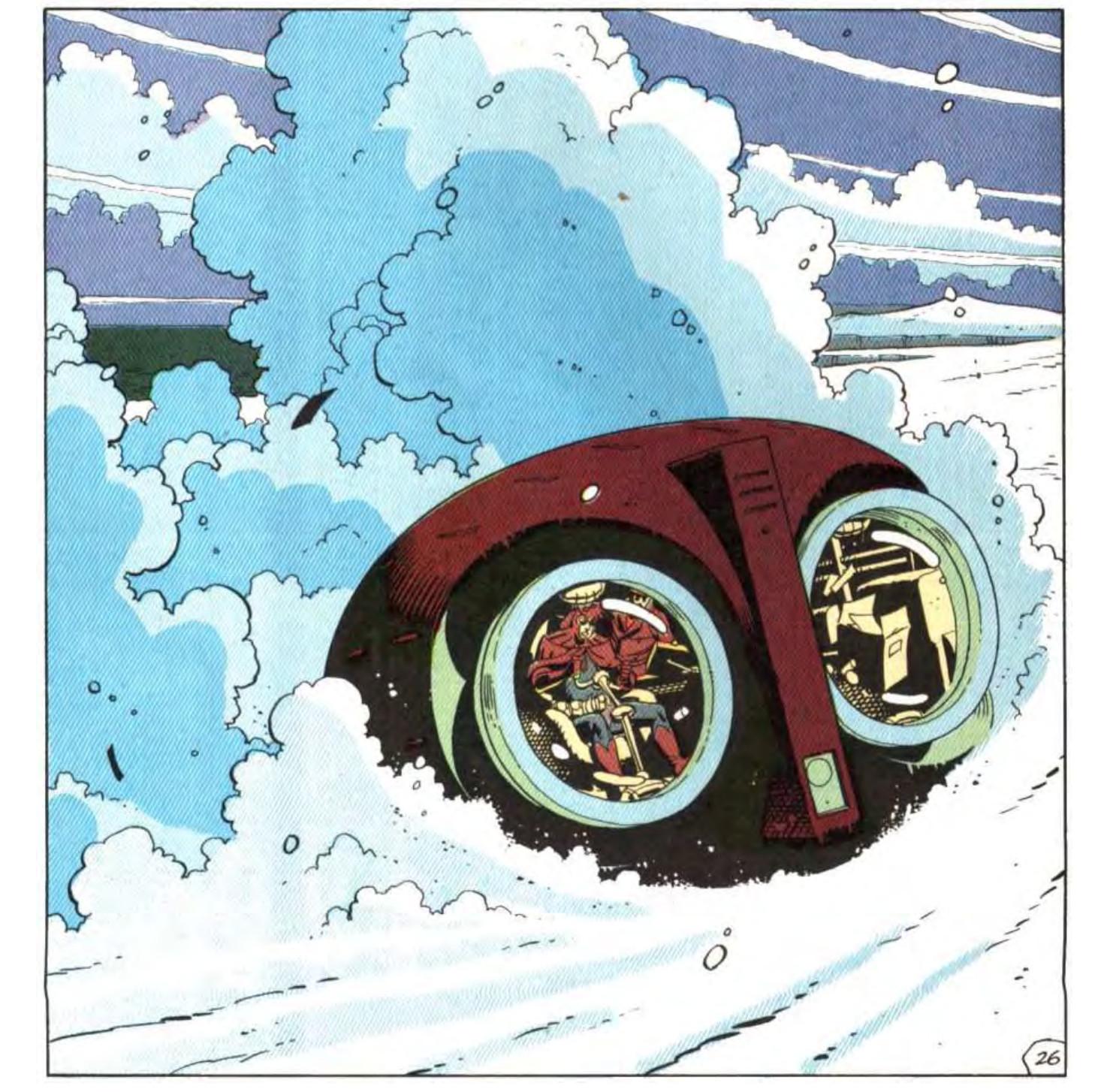 After Adrian saves the world from his daughter’s attempt to become an all-powerful god, he leads Laurie and Wade to the vessel that would bring them back to civilization. The ship is called Archie, as Laurie recalls fondly, and it’s the original ship that her ex-boyfriend Dan Dreiberg designed and used back in his days masquerading as the second Nite Owl. In the comics, Dan and Rorschach flew to Karnak in Archie on 11/2 to try to stop Adrian’s attack of New York. The ship has been collecting dust ever since, and now Laurie and Wade will use it to bring Adrian in to finally answer for his crimes.