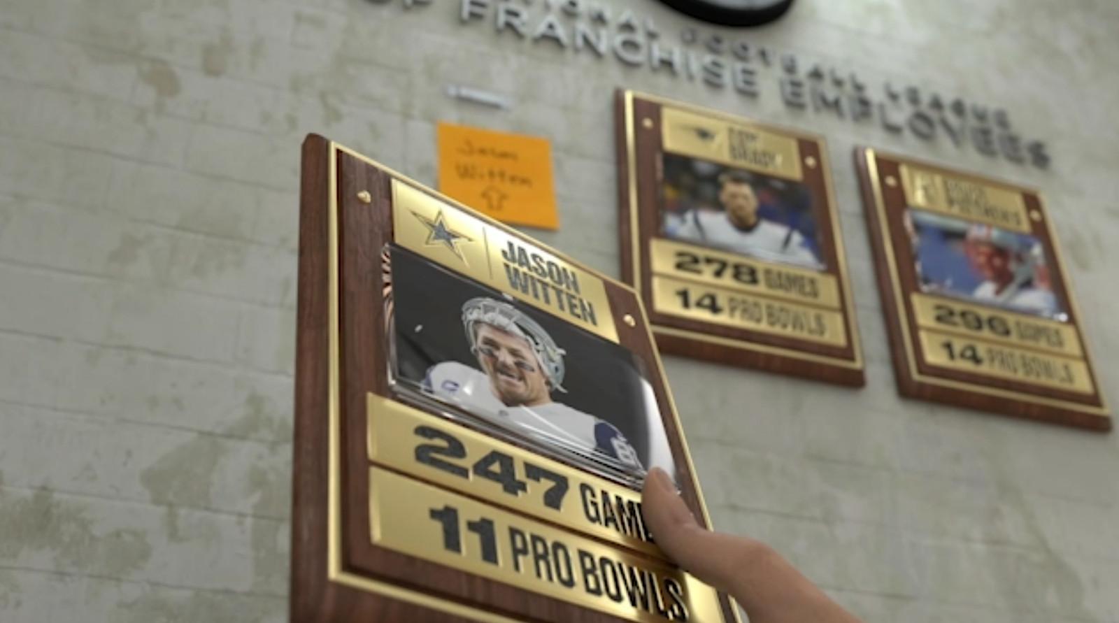 The real stunning detail here is that the spot on the wall is reserved with a post-it note that says “Jason Witten” with an arrow.