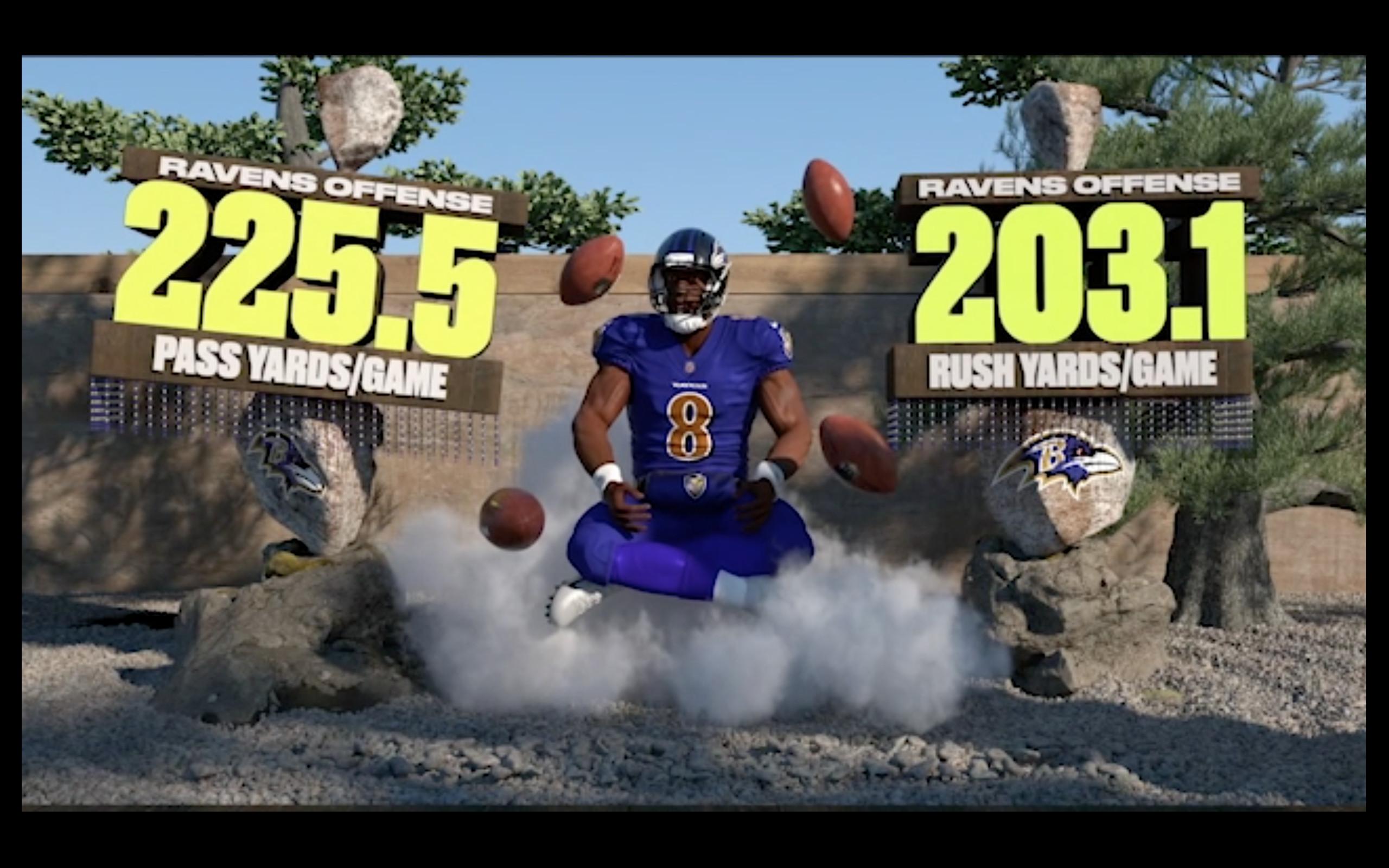 ESPN graphic producer Brandon Barrad is the one who suggested to Accordino that illustrating the Ravens’ offensive balance as a mental state rather than a seesaw would be best. Barrad was right. Lamar is floating on a cloud of … is that the tears of Steelers fans?