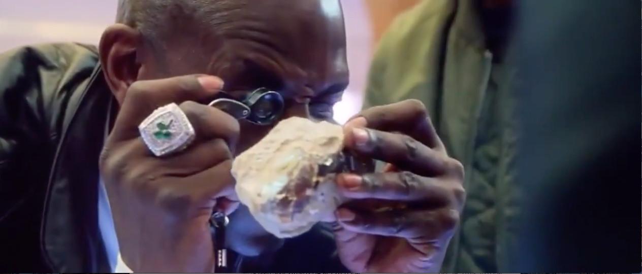 The Safdie brothers don’t necessarily care about perfect shots: Their style is frenetic, with the camera either chasing the characters or else crammed in their faces. Uncut Gems is no exception, but it’s still got its share of killer images, like this close-up of Kevin Garnett looking at the Ethiopian opal being fenced by Adam Sandler’s manic high-end jeweler Howard Ratner. Between the mystical imported stone and KG’s bespoke 2008 championship ring, there’s as much bling per inch as anybody could want; what’s funny, though, is the clinical, intimate intensity of the Big Ticket’s gaze. In the moment he’s just another covetous customer in Howard’s cramped shop, not quite believing his eyes.