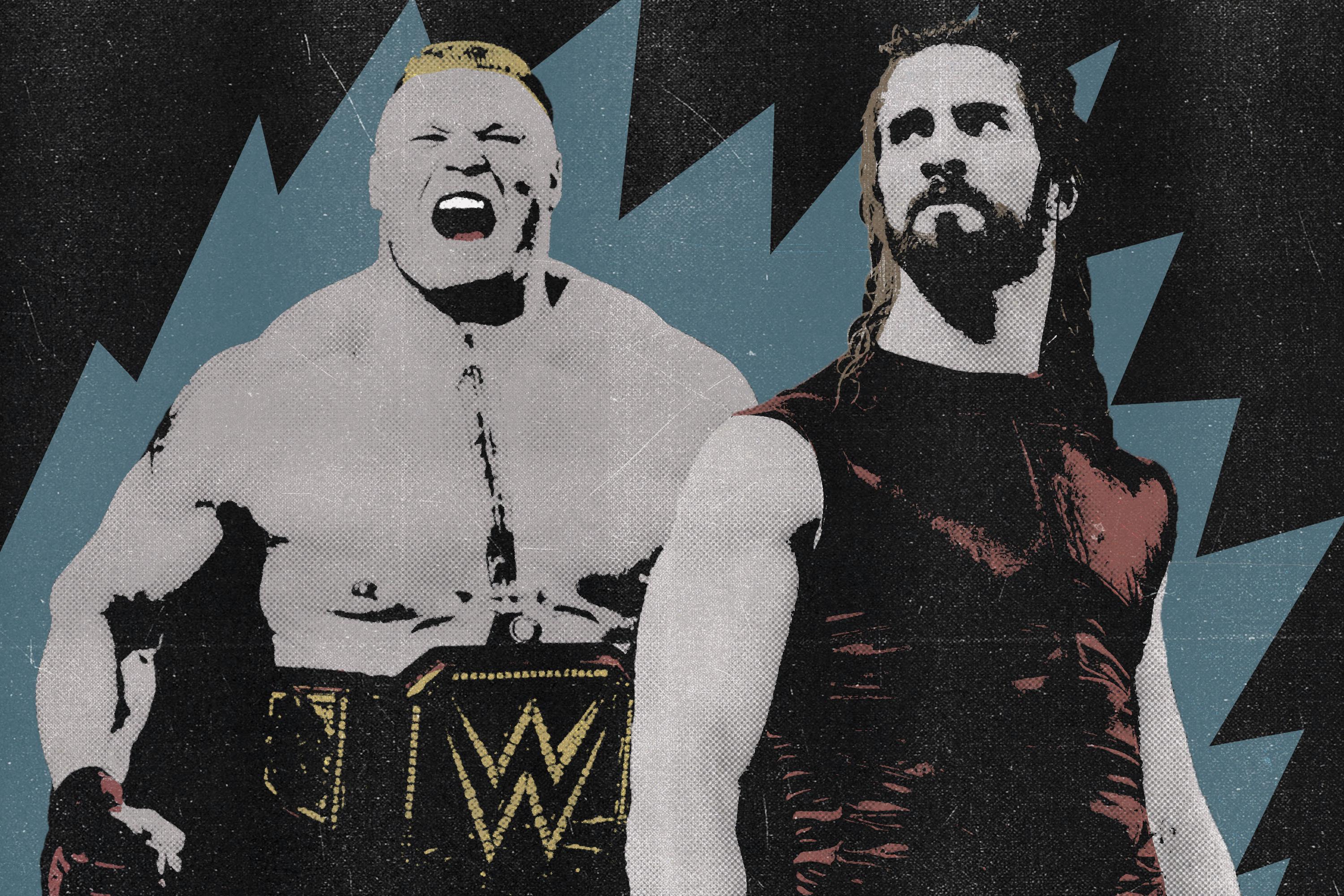 As of this writing, the card for professional wrestling’s biggest night (no offense to ROH and NJPW) has but two matches on the books, both of them top billings: Raw women’s champion Ronda Rousey versus Charlotte Flair, and Universal Champion Brock Lesnar defending his title against Raw poster boy Seth Rollins. We’re not even going to touch the former contest until it’s clear that Rousey v. Flair will proceed as planned, given the likelihood that story-line-suspended and story-line-hobbled Becky Lynch will fight her way into the bout. So let’s commence this limited feature series by taking stock of Lesnar’s and Rollins’s intertwining paths to deduce why we care and who will emerge the company’s alpha male.
