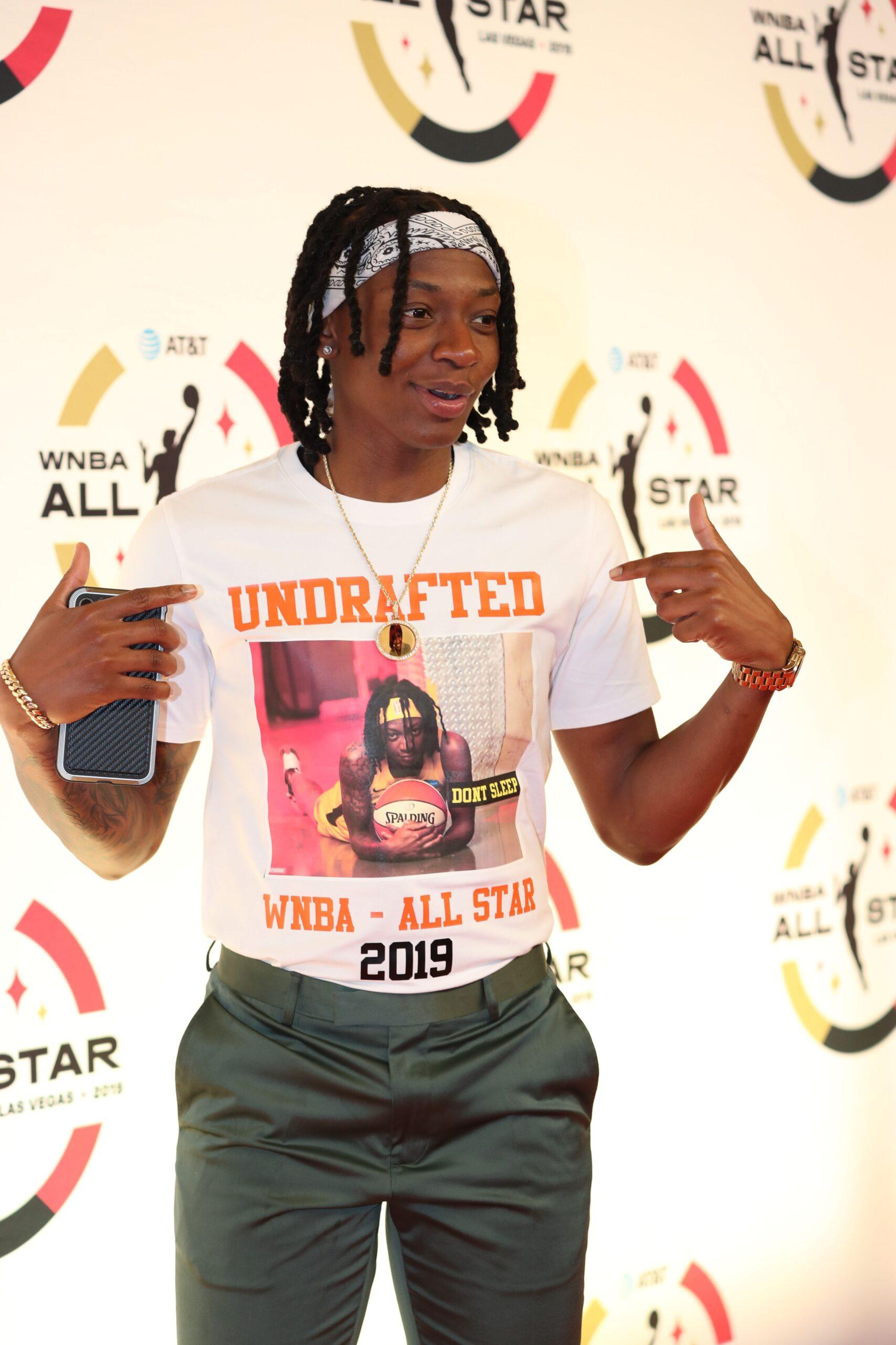 The WNBA always has an orange carpet event on the eve of its All-Star Game, which provides players a chance to make a statement with their style. Wheeler took that edict literally. Her T-shirt for the evening stated in bright orange letters across the front: “Undrafted. WNBA - ALL STAR.” The back of her shirt detailed her journey since. It read “The way of EDUB: Never Give Up!,” referring to her nickname, and it listed every stop of her professional basketball career—all 14 of them.