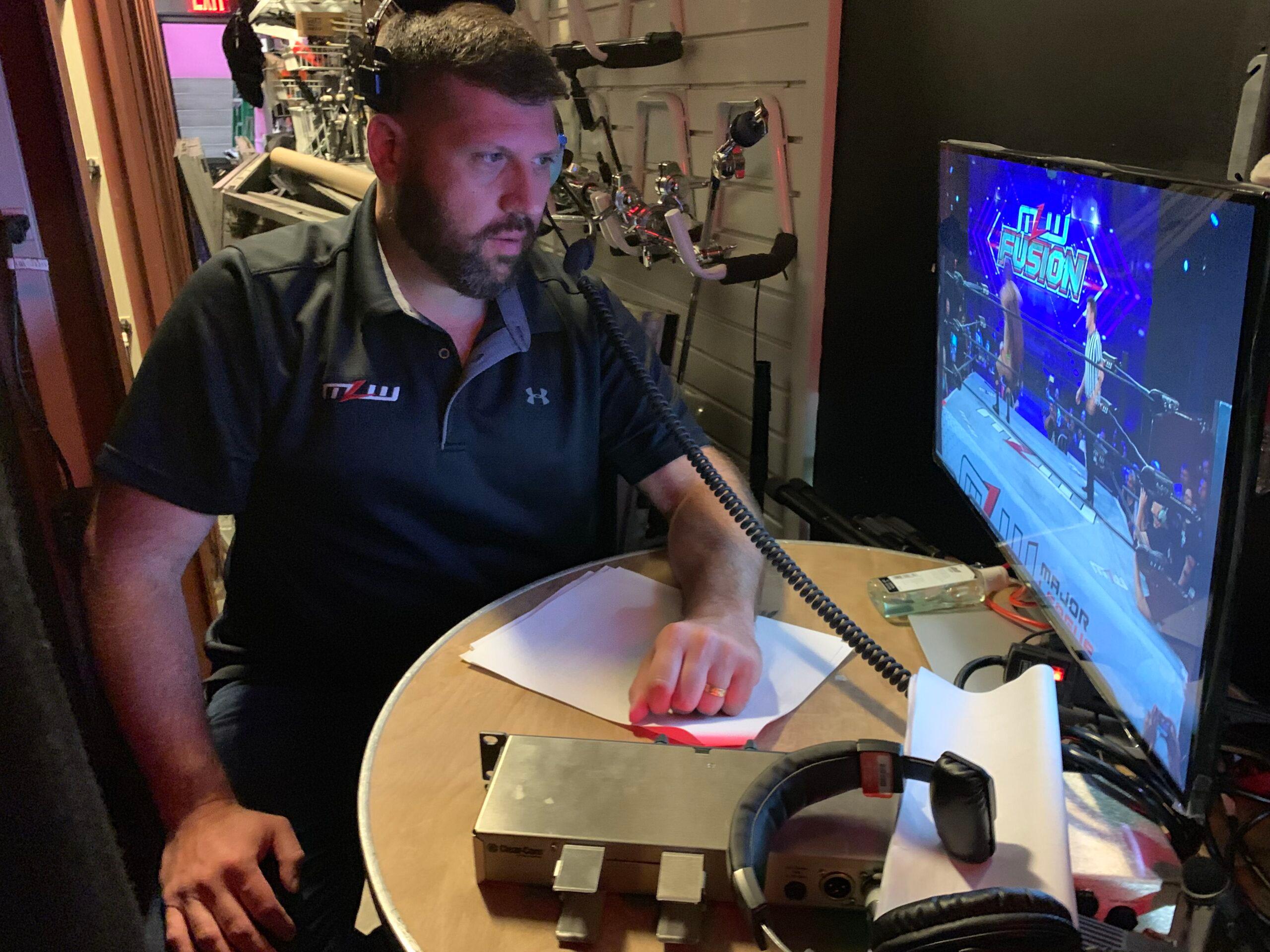 It’s a Tuesday in late July. In less than a day and a half, Court Bauer will be manning gorilla position at the Melrose Ballroom in Queens, New York, ensuring talent make their way down the entrance ramp on time and calling audibles into referees’ ear pieces as the action unfolds, all in the hopes that an edited-down version of the evening’s matches makes for a memorable hour of television. Every Saturday night at 9 p.m., Major League Wrestling—the company Bauer founded in 2002, shuttered two years later, and relaunched in earnest circa 2017—broadcasts the latest episode of its 60-minute MLW Fusion show on cable network beIN SPORTS. The in-ring action comes from live events but the fights are framed and contextualized by pretaped interviews and vignettes.