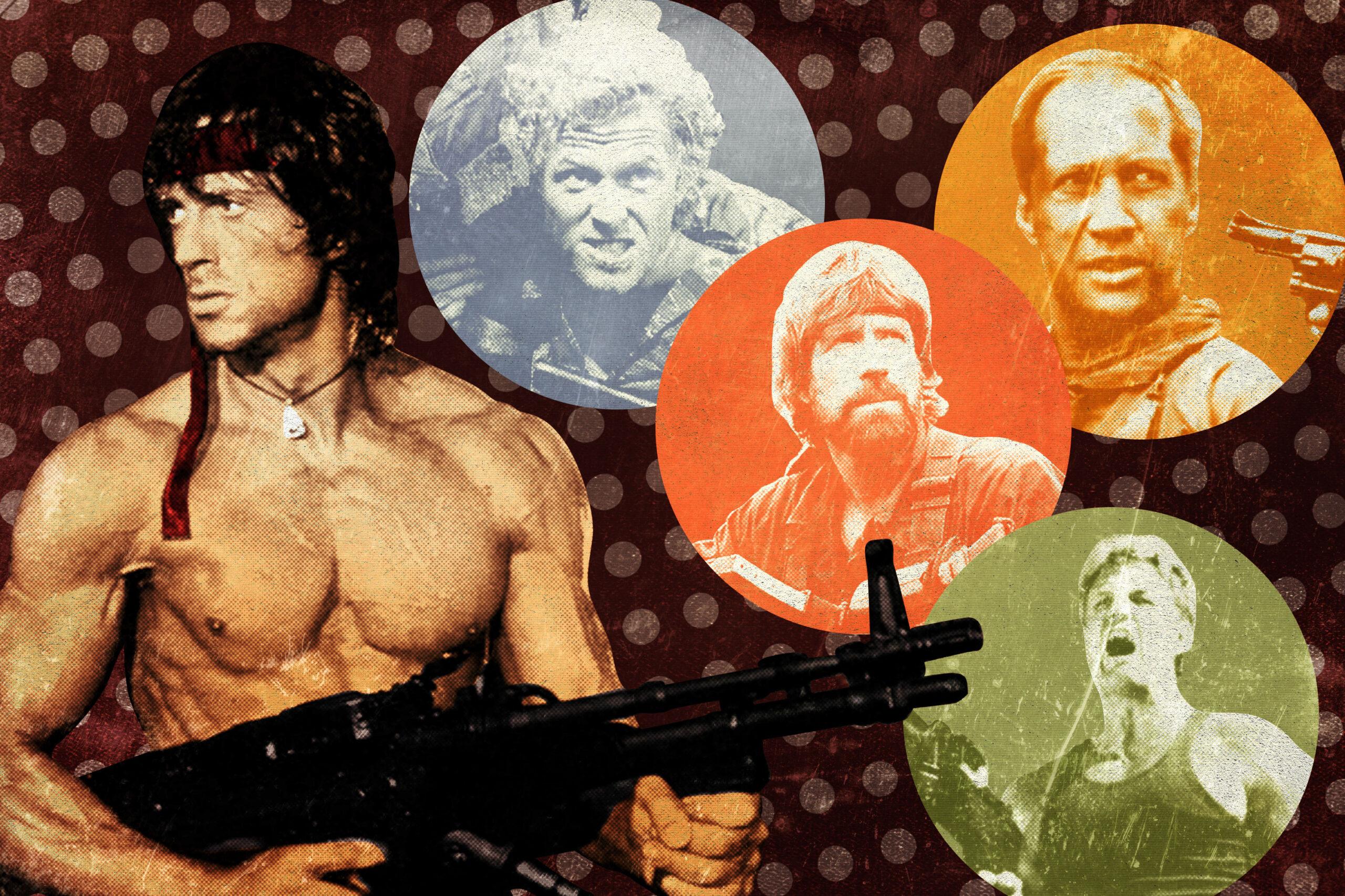On April 30, 1975, North Vietnamese military forces took Saigon, ending the war in Vietnam. But the war would resume less than a decade later on another front: movie screens. It’s hard to pinpoint when and where the first shots were fired, but easy to point to a 1982 battle outside Hope, Washington, as the inciting incident. The skirmish, as depicted in the 1982 film First Blood, pitted a small-minded, vet-disrespecting sheriff against a Medal of Honor–winning ex–Green Beret named John Rambo (played by Sylvester Stallone) who found himself pushed too far. By decade’s end, hostilities had spread and escalated as an army of heavily armed musclemen returned to Southeast Asia to deal with the unfinished business of a war that left America scarred and confused by what it had lost and left behind—business that, in the movies at least, could be concluded with determination, grimaces, and a seemingly bottomless supply of ammunition.