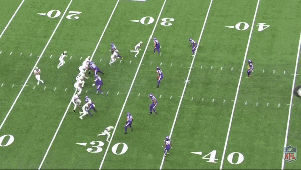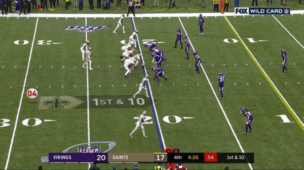 5. Adam Thielen is back and healthy, and his presence is a boon for the Vikings offense. After returning from a hamstring injury in Week 15, Thielen tallied just three catches for 27 yards in two games. But on Sunday against the Saints, he exploded for 129 yards on seven catches. Thielen is a master at the subtleties of creating separation, but an area of his game that occasionally gets overlooked is how well he tracks the ball in the air. His 41-yard reception in overtime—the one that set up the Vikings’ game-winning score—may not look like an especially impressive catch, but locating the ball over his shoulder and holding on to it while getting yanked down by Patrick Robinson is immensely difficult. The same goes for his 34-yard reception in the third quarter, which seemed to shatter cornerback Marshon Lattimore’s soul. When he’s right, Thielen is one of the most complete receivers in the NFL, and his return could make the difference for a Vikings playoff run.