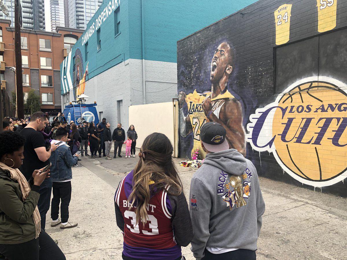 The sky above Staples Center was painted gray, but down below a two-toned sea of purple-and-gold mourning stood out on this gloomy Sunday. All around Los Angeles, murals of Kobe Bryant and the arena where he played most of his 20-year NBA career became shrines of remembrance. Shocked fans dotted the city, gathering to pay their respects to Bryant and his daughter, Gianna, who were two of the nine people who died in a helicopter crash Sunday morning.