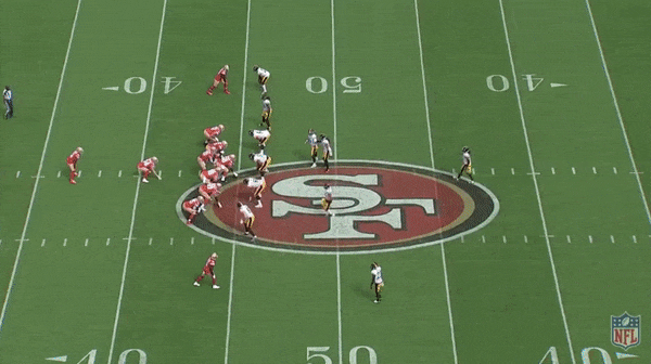 That last predicament burned the Steelers when the two teams met in Week 3. On a first-and-10 near midfield late in the first quarter, the Niners lined up in 21 personnel (two backs, one tight end, two receivers) with Juszczyk as an I-formation fullback. At the snap, Juszczyk shot out of his stance and made a beeline toward linebacker Mark Barron in what looked like a simple lead run. But just before contact, Juszczyk slipped down the field and caught a pass for a 27-yard completion.