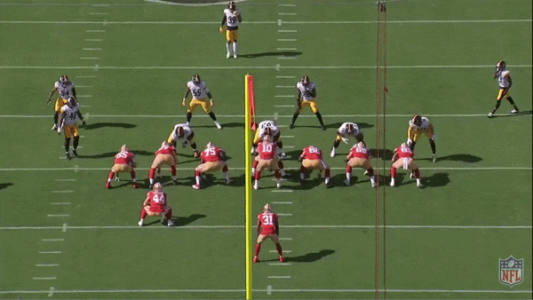 This season, Shanahan has made arguably his most significant departure from his core football principles by changing up his rushing attack. Since his Houston days, Shanahan’s ground game has consisted of primarily zone-running designs. But this year, the Niners tapped into gap and power schemes unlike ever before. Heading into their game against the Steelers in Week 3, Shanahan knew that Pittsburgh played its outside linebackers so wide that beating them to the edge would be virtually impossible. So rather than running the ball to the perimeter, the Niners deployed gap-scheme runs that exploited the extra space between the tackles. San Francisco racked up 165 yards on 34 running back carries as Shanahan called more counter run plays in one game than he had in his previous 10 seasons combined.