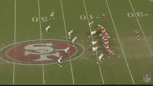 Against the Packers in Week 12, the Niners came out in a three-tight-end set on a first-and-10 from their own 39-yard line. At the snap, they go right into their Burner concept, except this time, Kittle is the no. 1 receiver to the play side. The formation and personnel might be different, but for the first 15 yards, every detail of the routes resembles the Niners’ standard Burner combination. But then, just as cornerback Kevin King turns his hips, Kittle cuts back to the inside and breaks wide open for a 61-yard touchdown. Every aspect of the play mimics a design that defenses have been trained to recognize and react to, and by using a different personnel grouping and a slight adjustment, Shanahan twists that preparation to serve his own ends.