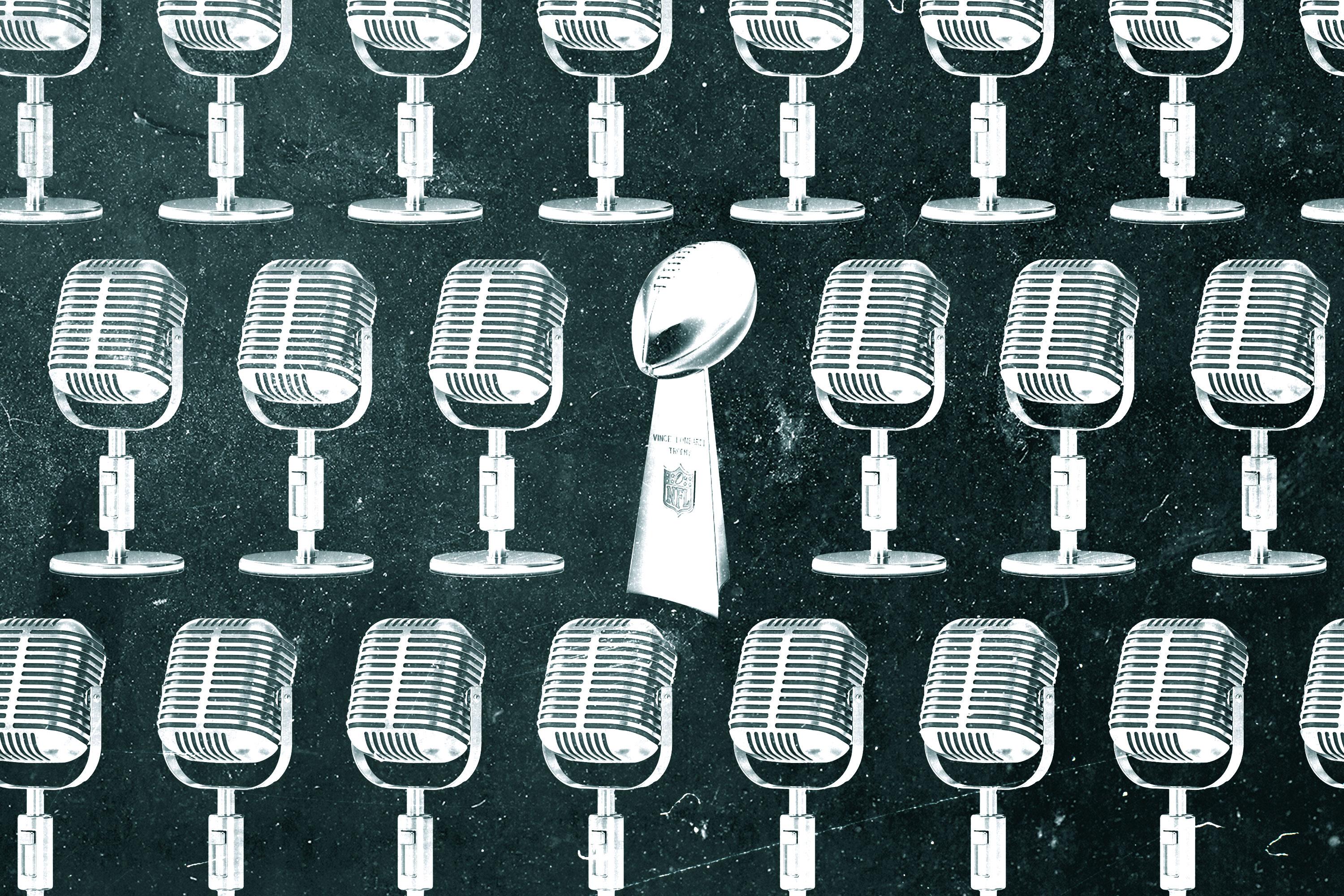 On sports radio—where every hotline is sponsored by a low-testosterone center—plug-sanity is hardly new. Even so, the sheer scope of the branding on radio row is startling. This year, Jason Witten spoke on behalf of a hotel chain. Mark Schlereth for kinesiology tape. Lawrence Taylor for some kind of 3D pictures that look like those old Sportflics cards.