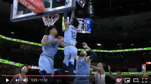 Category 1 — How difficult and/or impressive was the dunk? This isn’t a ferocious dunk, like some of the other Ja dunks have been, but it’s a very difficult dunk. After he gets the switch, he sees that it’s Baynes who’s guarding him. He takes stock of the situation, figures that a bucket here ends the game, and goes to work. He pulls Baynes out into the deep water past the 3-point line, gives him a quick stutter-step dribble, zips by him, and gets to the rim. Once there, he plants two feet, jumps, moves the ball from his left hand to his right hand on the way up, and then somehow jumps so high that he dunks the ball while still on his way up, which is really just outrageous. It’s all of the things that make Ja such a joy to watch—his basketball smarts, his handle, his fearlessness, his unstoppable athleticism—on display at once. 15/20.