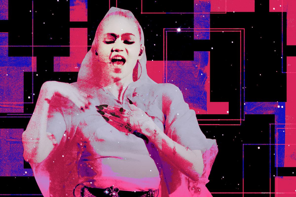 Grimes’s fifth album, Miss Anthropocene, released last Friday, is about idolatry during the apocalypse, when fandom looks like worship and pop stars are expected to act accordingly. The ethics of stardom become murky when you consider the chaos it overshadows—systemic oppression, climate disaster, a country careening toward dictatorship. The pop star is no longer just an entertainer. She’s an activist. For years, people begged Taylor Swift to use her platform to speak on political issues until someone on her management team decided that recognizing the gay community might be good for marketing. But Grimes does the opposite of virtue signaling; she milks controversy, defending capitalism and welcoming our AI overlords. She seemed to be poking fun at pop wokery when she announced Miss Anthropocene last year with a singular goal: “I want to make climate change fun.”