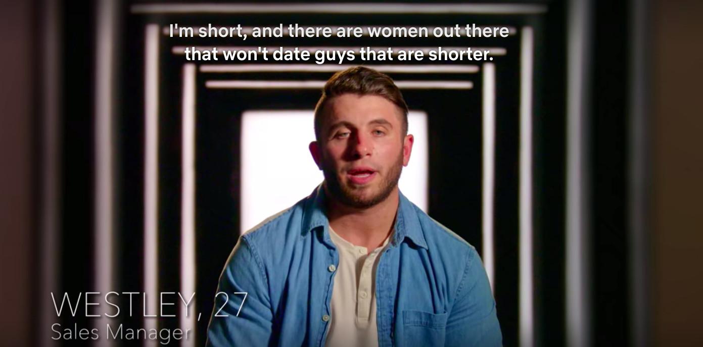 After the opening title sequence of the premiere episode, the first man we hear from is Westley. He gives an elevator pitch that sums up the show’s presumably radical premise, and how it might help him specifically. “I’m short,” Westley says. “And there are women out there who won’t date guys who are shorter. It’s a bummer, but being in this facility, we’re really getting down to what matters most.” Less than a minute into the show, I was already rooting for our diminutive underdog. Would our Short King’s big heart win someone over before they saw his tiny frame?