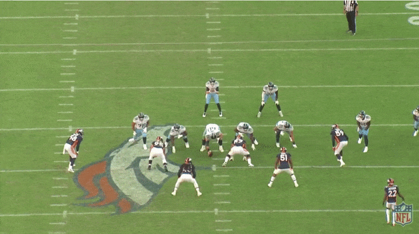 The scouting report: My hunch is that there’s a slight disconnect between the public’s opinion of Conklin and his actual profile as a player. That gap in perception began with Conklin’s (mostly undeserved) first-team All Pro nod as a rookie in 2016. In that year and the ones since, the Titans have done a wonderful job of providing Conklin with help in the passing game. He rarely takes true pass sets while matched up one-on-one with a pass rusher. Tennessee uses tight end chips and slot receiver alignments toward Conklin’s side to slow down opposing rushers, and the Titans’ heavy reliance on play-action also helps mask Conklin’s deficiencies in traditional pass protection. On the rare occasions when Conklin is matched up with a quality pass rusher on the outside, he struggles with speed. Because he has to work so hard to cut off the corner, he’s often left vulnerable when rushers use speed-to-power counter moves. Case in point: this play against the Broncos from last season. There’s no shame in getting bullied by Von Miller, but this type of stuff happens against lesser players too.