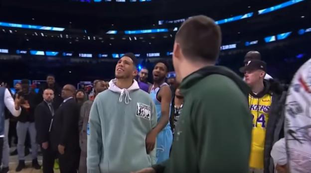 For his championship-icing dunk, Gordon gazed into the crowd and called Tacko Fall, all 7-foot-5 of him, to the court. (Shaq, his first choice, wisely declined.) Fall smiled nervously; he clearly did not want to go. But after what can only be described as ruthless bullying by his peers, Gordon, Shaq, the TNT production team, and probably Adam Silver, Fall reluctantly ambled to the floor.