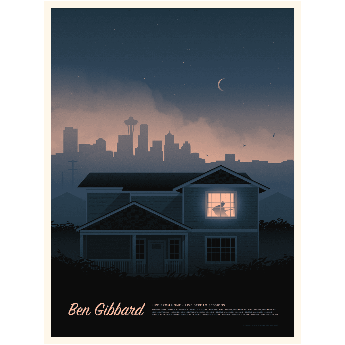 One month ago today, before most of the country started to self-isolate, Death Cab for Cutie founder and frontman Ben Gibbard stood on stage with his band at Innings Festival in Tempe, Arizona. Four songs into his set, he was forced to cut the concert short because of an illness that had first laid him low in late February. Gibbard hasn’t performed in person since then, but he’s been busy since he holed up in his home in Seattle last month. Rather than concede that this place is a prison, he became one of the first major musicians to start livestreaming concerts for charity via YouTube, Facebook, and (later) Twitch. Last week, he also released a topical tune, “Life in Quarantine.” Net proceeds from the sale of the song and the poster that commemorates his streaming series will be donated to Seattle-area relief organizations.