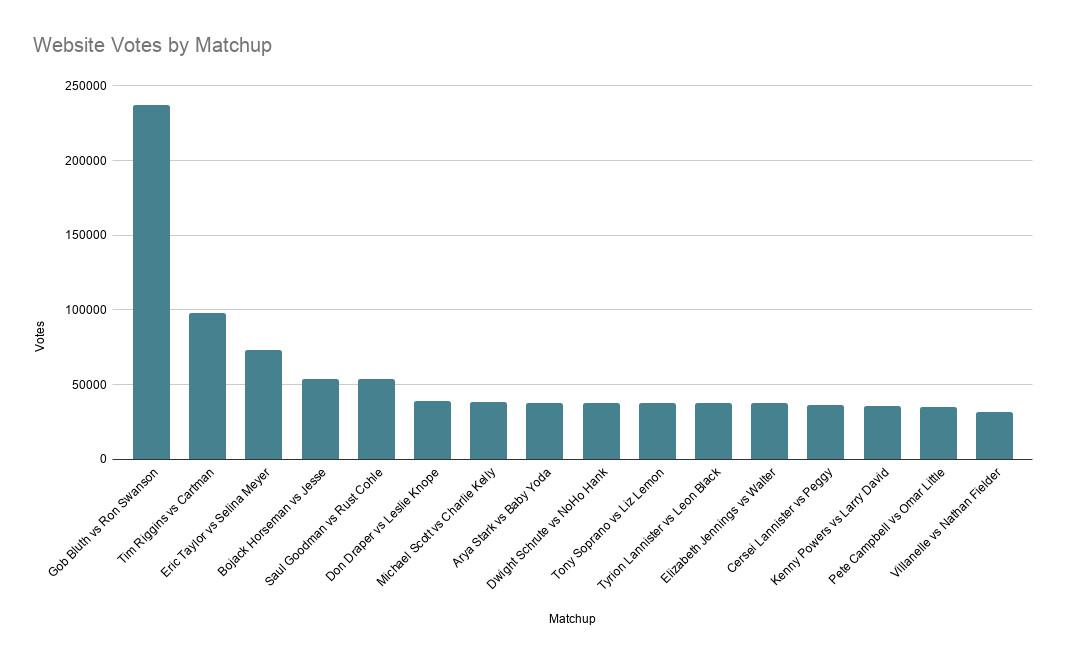 If you visited our Best TV Character bracket on Tuesday, you may have seen a shocking result, which was Gob Bluth, a no. 6 seed, absolutely destroying Ron Swanson, a no. 3 seed: