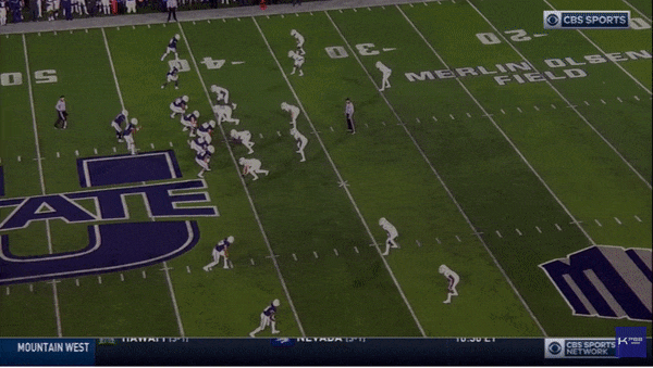 Unlike some other gifted-yet-faulty prospects, accuracy isn’t Love’s primary flaw. A majority of his throws are on-target and show deft touch, even when he’s on the move and the degree of difficulty starts to rise. Before studying him, I expected Love’s college tape to look more like Josh Allen’s—full of scattershot throws from a QB who needed to recalibrate his rocket-like arm. But in the five games from last season that I studied, there was only a handful of egregious misses. He completed only 31.8 percent of his deep throws last season, but the quality of Utah State’s receivers drag that number down a bit. Against LSU, one of Love’s receivers dropped a missile down the middle of the field for a would-be touchdown. Another huge gain vanished on a bobbled deep ball against Colorado State. Even on plays that wouldn’t technically go down as drops, Love’s receiving corps rarely created chunk gains. Love routinely gave his guys a chance on 50-50 balls down the field, but many of those were misplayed or misjudged. Executives and coaches who are bullish on Love will look at those throws, picture a professional wideout on the other end, and imagine all the chunk plays waiting to happen. Even Mahomes occasionally needs help from a player like Tyreek Hill, who led the league in contested catch rate in 2018 despite his 5-foot-10 frame. More important than laser-like accuracy down the field is the ambition to push the ball vertically and the ability to consistently give receivers a chance. Love has both.