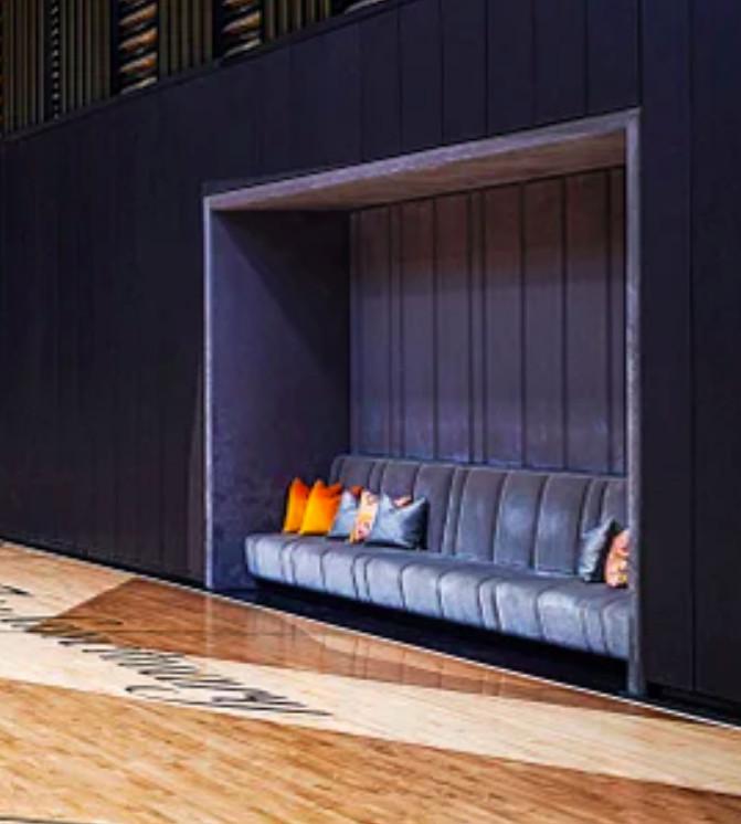 10. On to the basketball court. Setting aside the fact that the on-court sofa looks uncomfortably shallow and that basketball players are, generally, taller than non–basketball players, and thus require even more space: Has Drake thought through the decision to make the thing that very sweaty people sit on out of velvet?