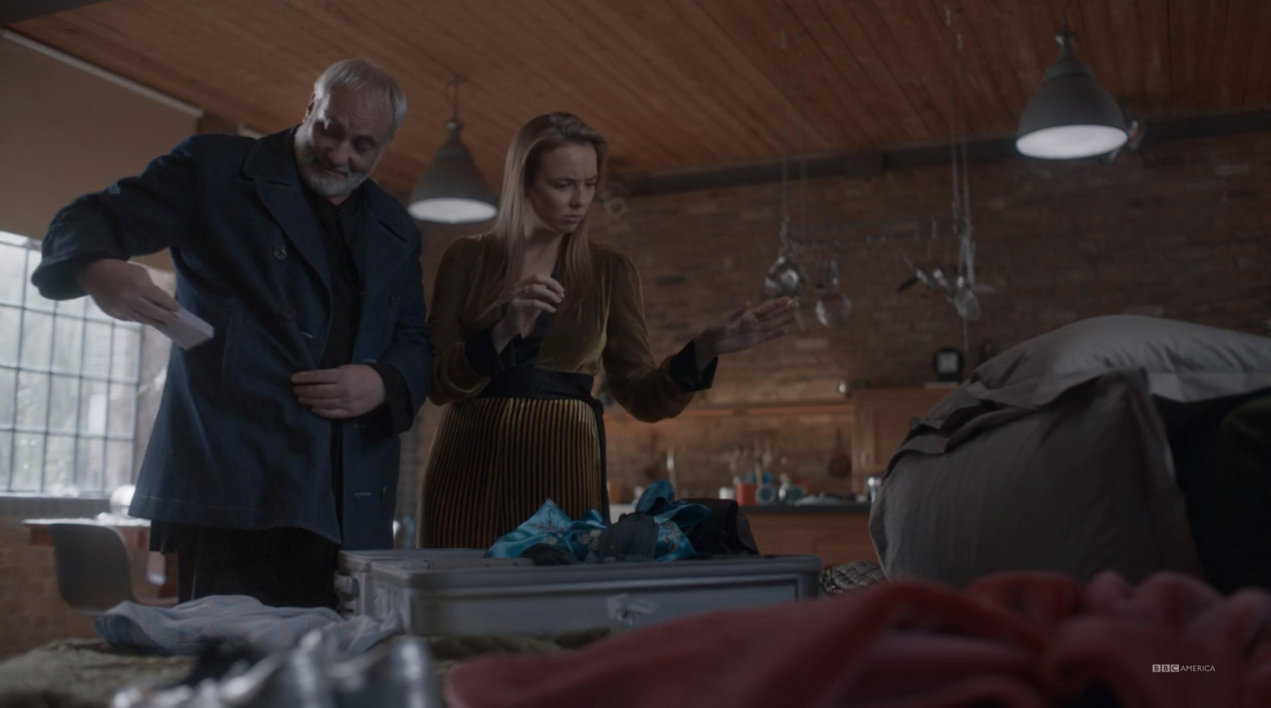 Huge points for attention to detail here—Konstantin shows up in the exact same outfit, down to the shoes. How did Villanelle know?
