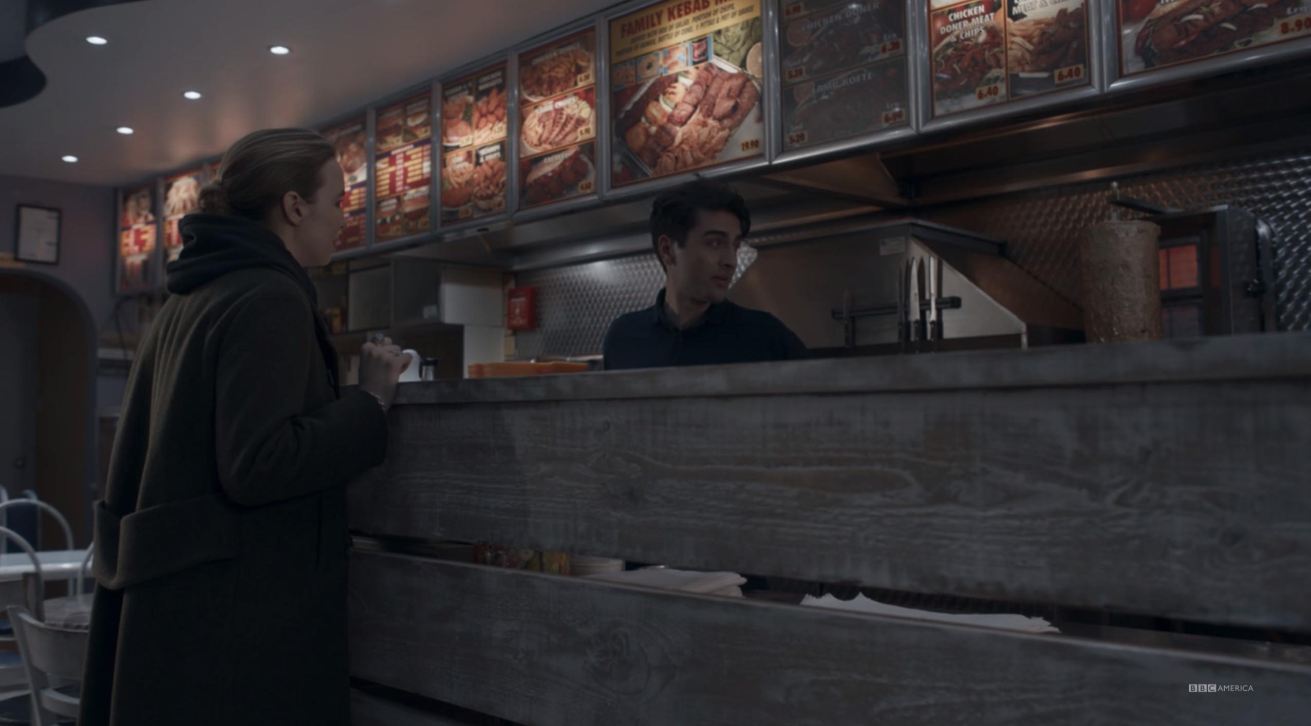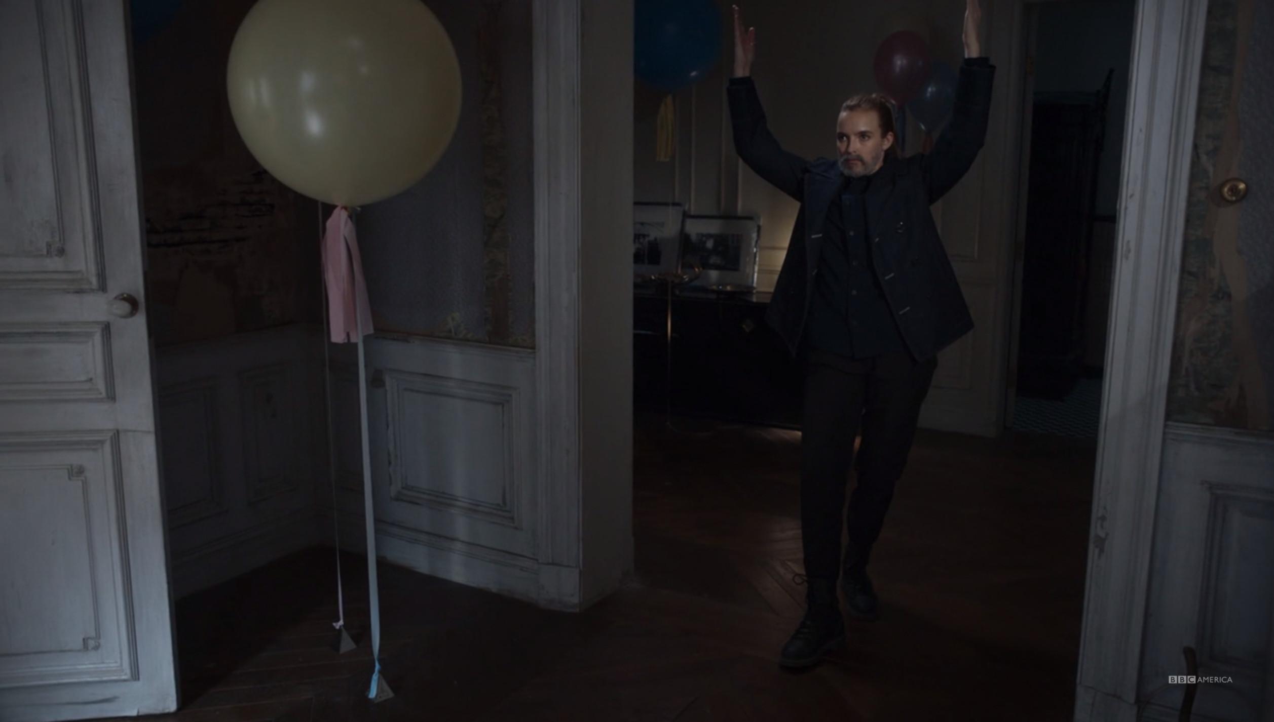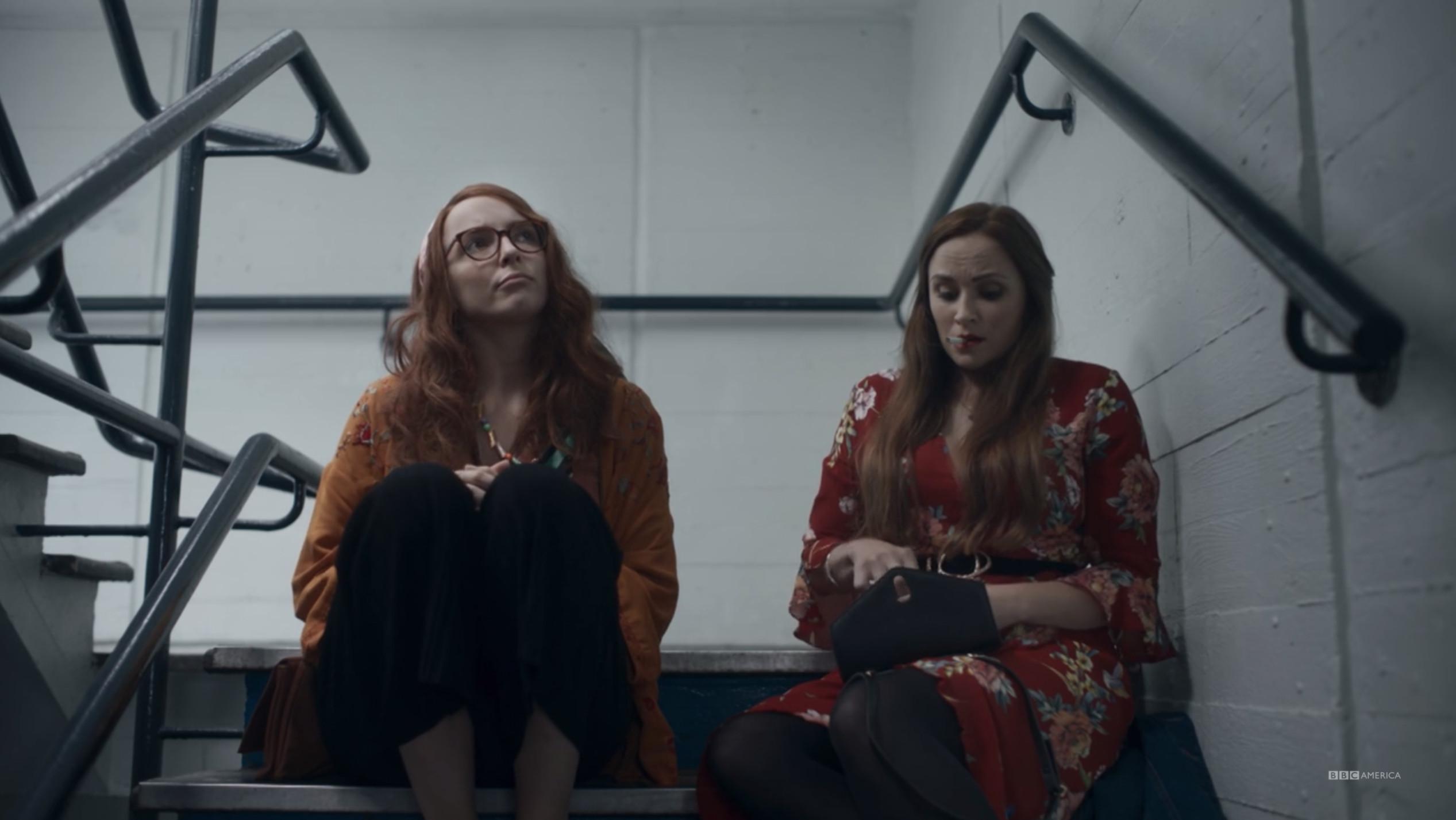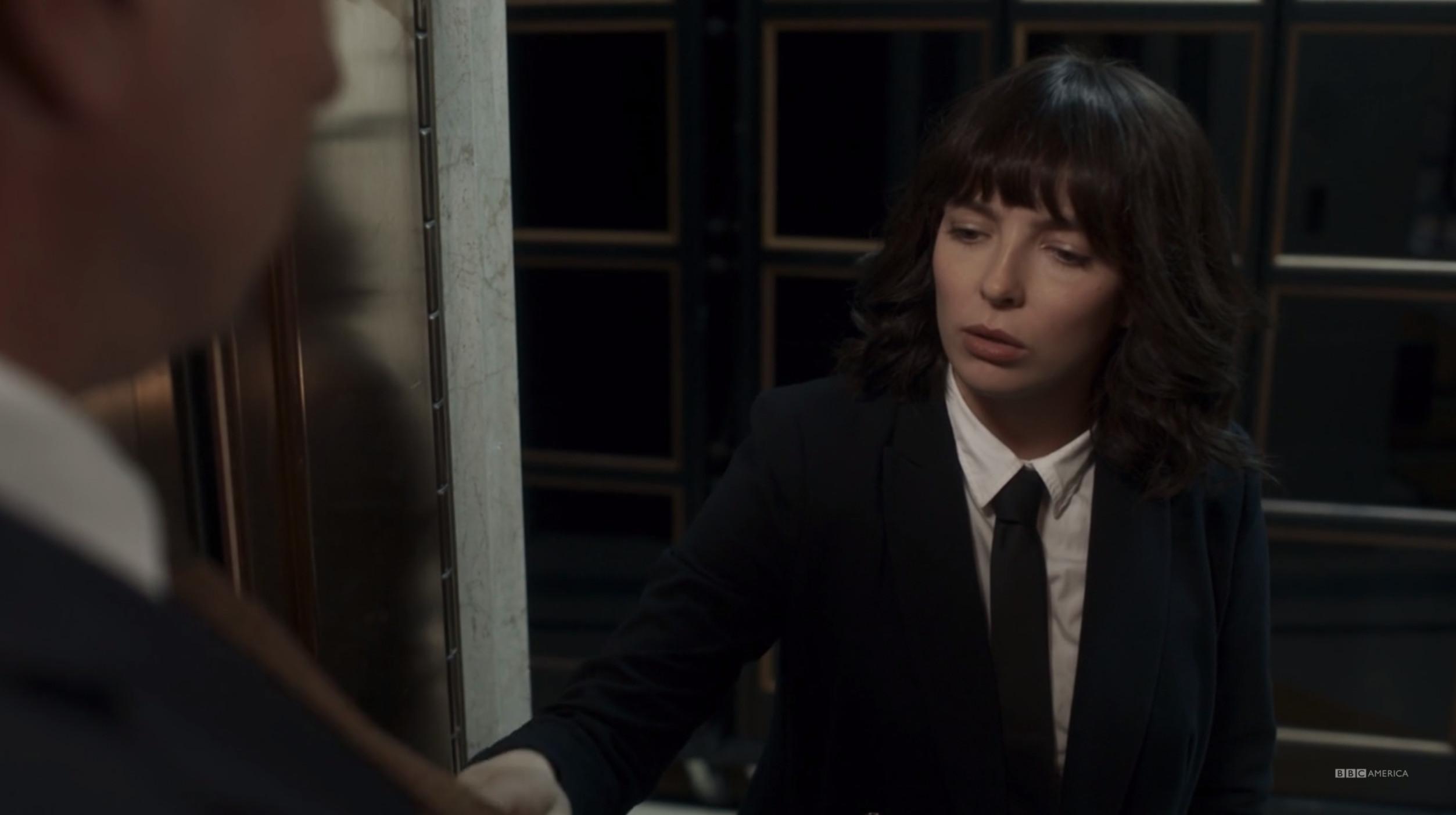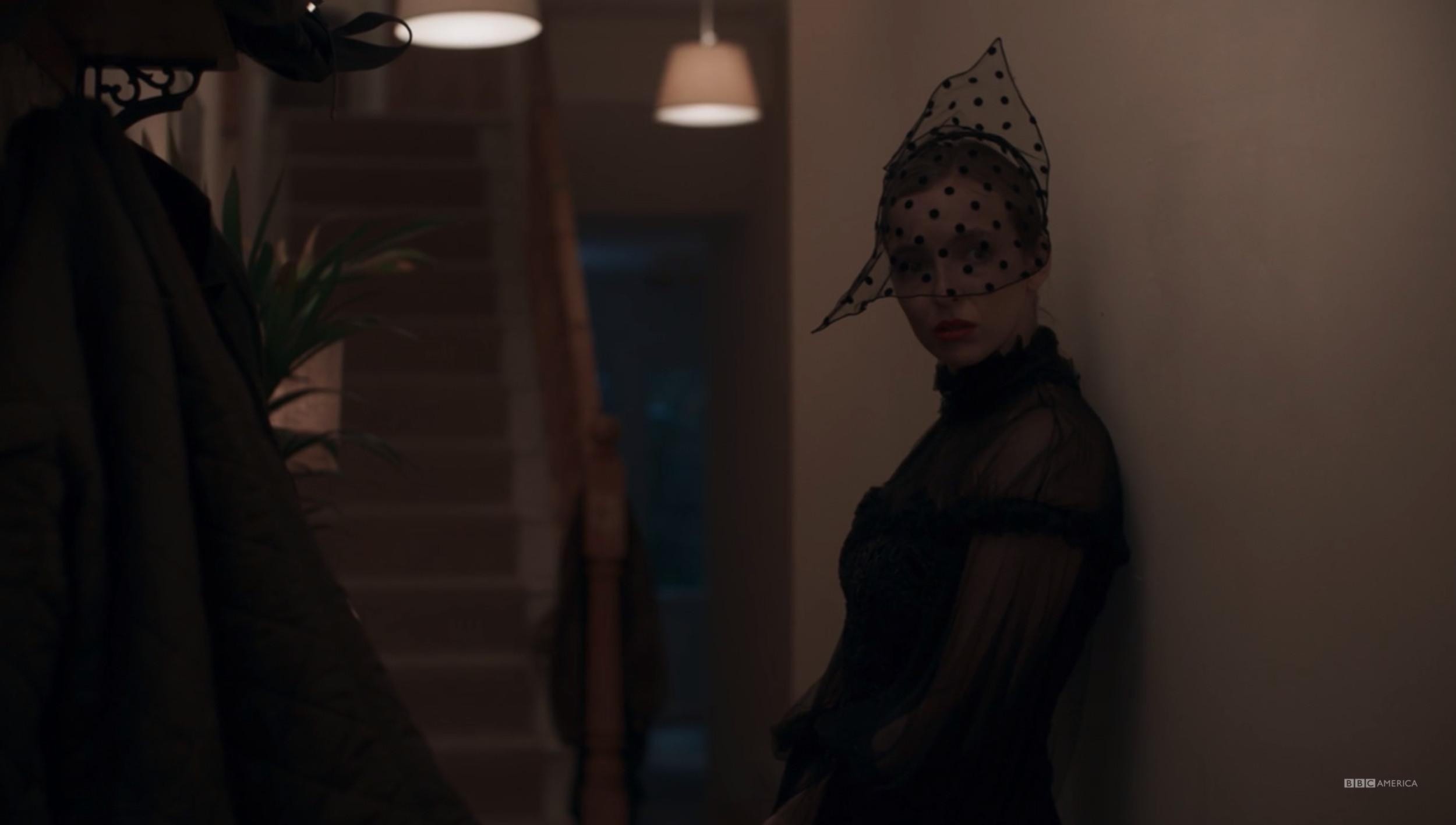 Rather than look at screenshots of Villanelle’s dinner party outfit, featuring polka dot veil and floor-length black dress, I recommend you just go rewatch the entire episode. I can’t do it justice. Iconic.