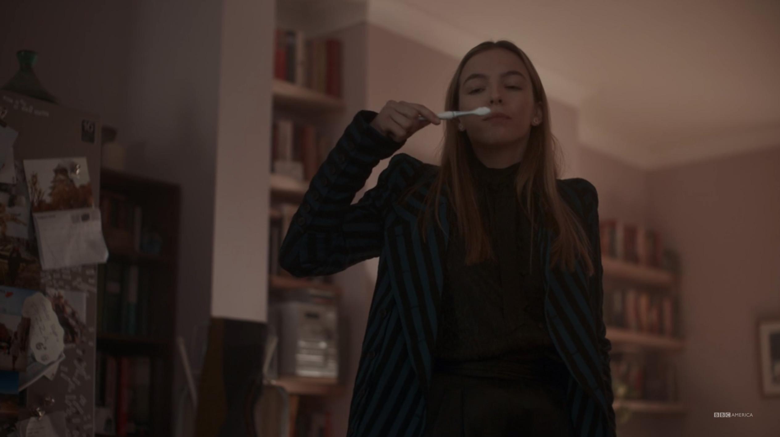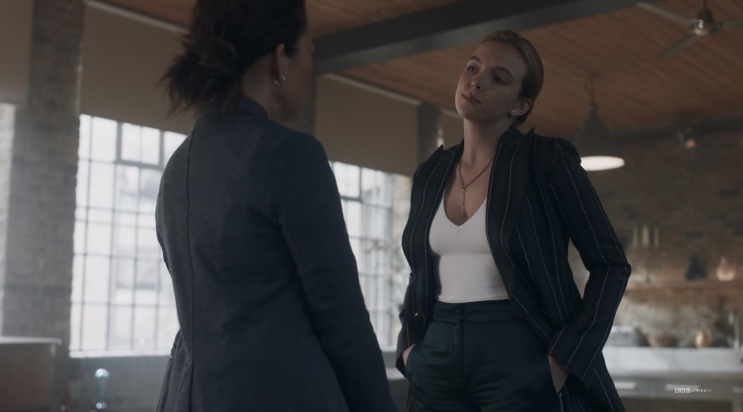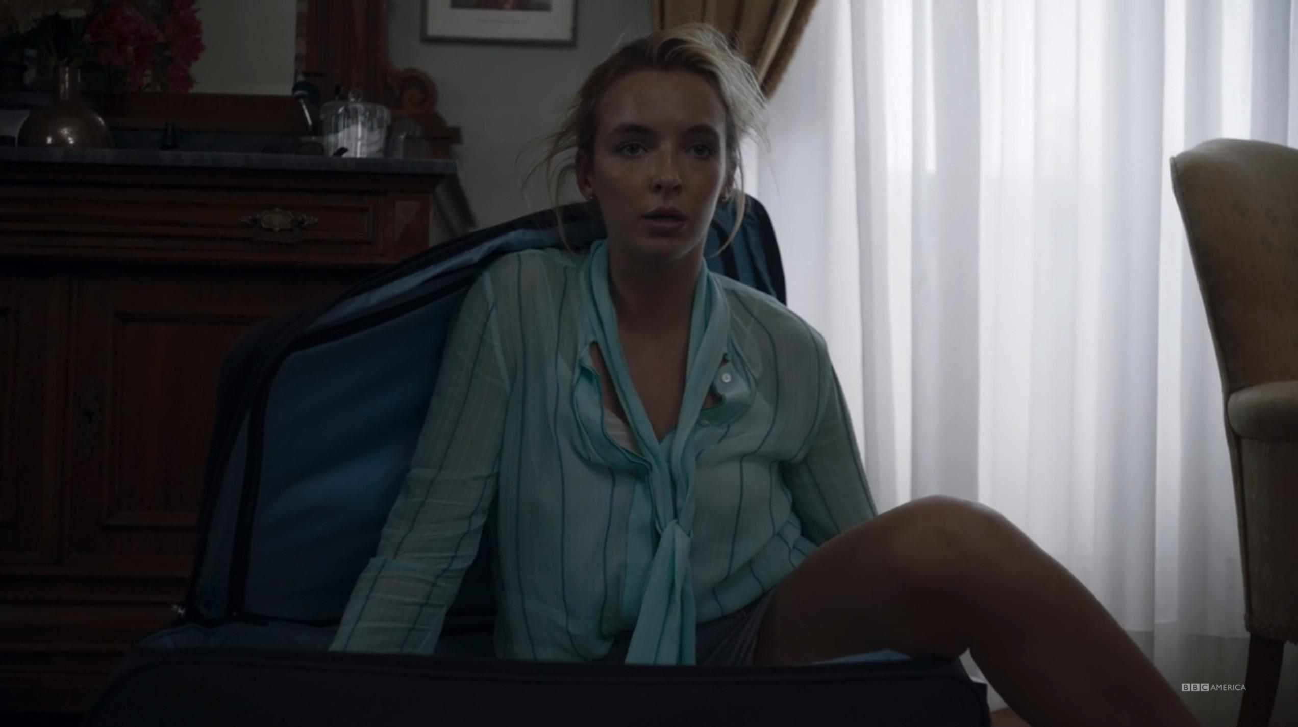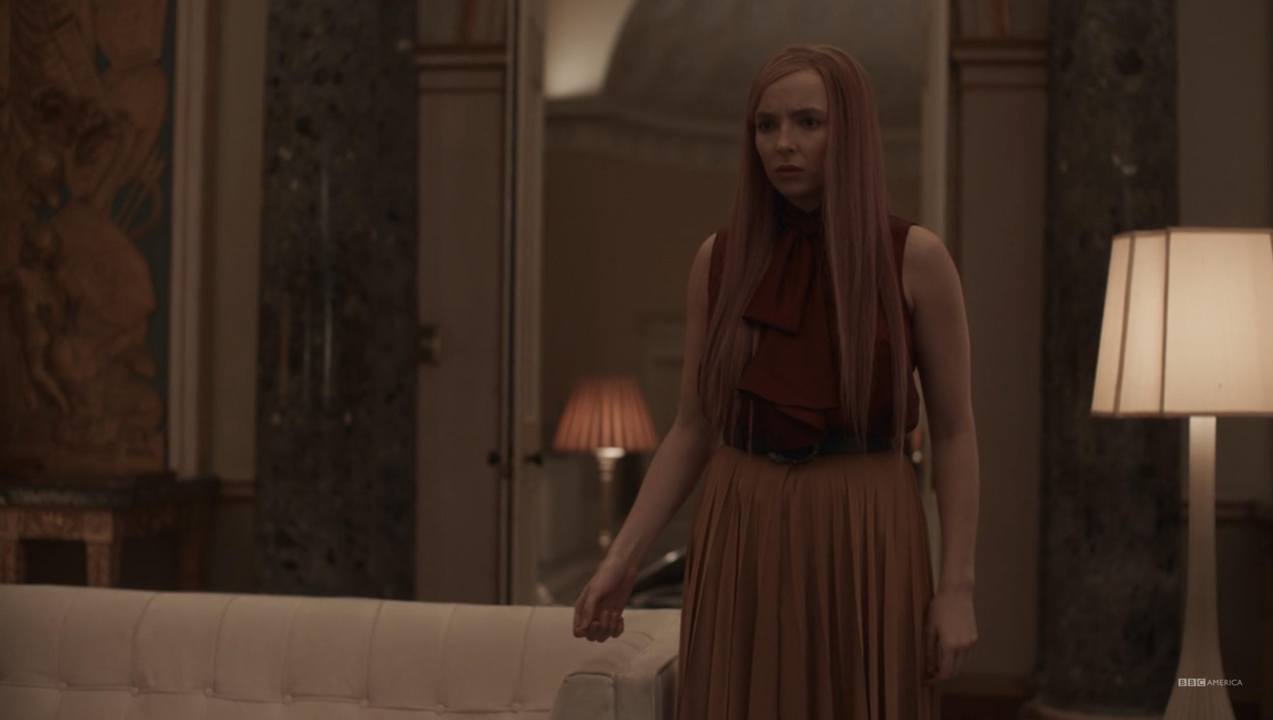 This is a throwaway look in the episode in which it appears, which again, features nine costume changes. That this constitutes a blip is why Villanelle is the best dresser on TV.