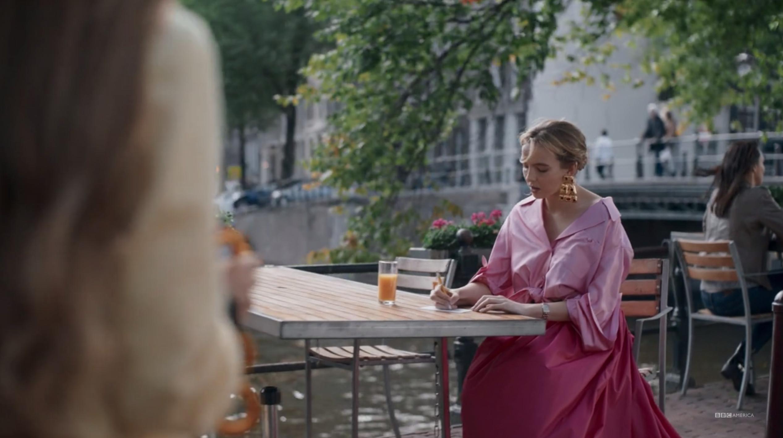Perhaps Villanelle’s most ridiculously over-the-top outfit, for absolutely no reason. Absurd and perfect. Amsterdam was a special place for our girl.