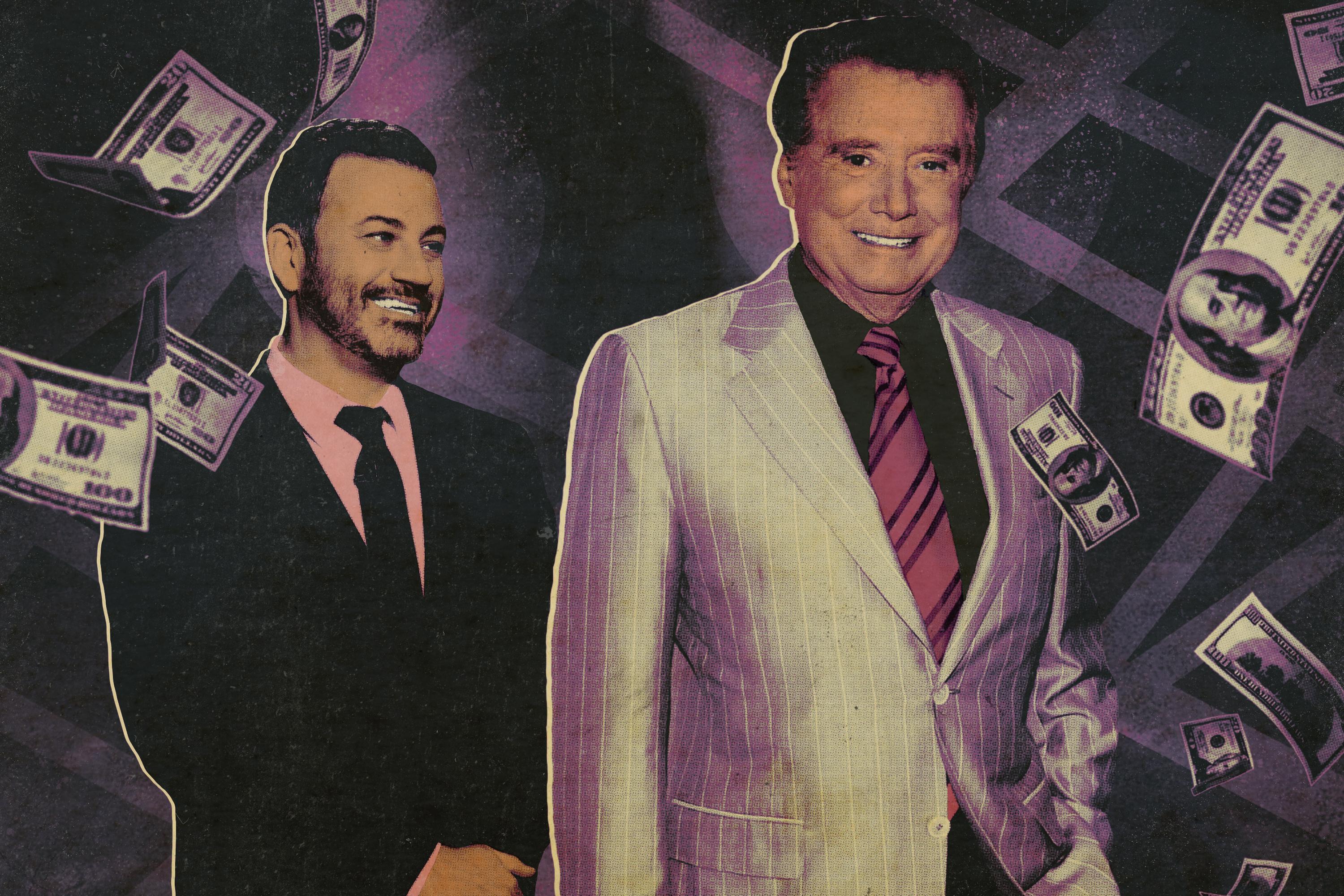 Millionaire dominated television. Its ratings blew most everything else on TV out of the water—even, heaven forfend, Frasier. With advertisers swarming, ABC would rake in more than $1 billion in the show’s first three years. (As of 2018, it had given out less than a tenth of that as prizes.) With its episodes devoted in equal parts to the actual game show and high-drama, oft-manufactured cliff-hangers that interspersed answers, it was widely credited with jump-starting a strange new genre of programming: reality television. (Survivor debuted less than a year later on CBS.) In 2000, The New York Times called Philbin “arguably the biggest television star in the country”; in 2011 he would remember walking around, referring to himself in the third person and telling anyone who would listen that “Regis saved the network!” “I was a big man!” he said. “I was a giant!”