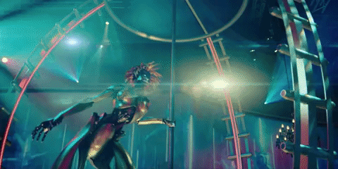 Its story follows Leo (Alexander Skarsgård), a mute bartender who was raised Amish and injured his neck in a childhood boating accident. (Because of his upbringing, he was never allowed to have surgery that could’ve restored his voice.) Leo lives in a futuristic, Blade Runner–esque version of Berlin, and is dating a waitress, Naadirah (Seyneb Saleh), who appears to be keeping some sort of secret from him. I would be remiss not to mention that the nightclub where the two characters work is the type of place that features robot strippers, a sight that leads one patron to say, “Real sexy hood ornament you got dancing up there tonight.” I’m obligated to provide GIF evidence: