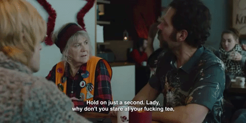 For a roughly two-hour film, Mute takes a long, long time to get anywhere remotely interesting; it feels about twice as long, with tangents that serve no purpose but to flesh out this dystopian near-future. Not helping matters is the fact that Leo isn’t just mute—a unique obstacle combined with the character’s lack of tech knowledge, lest you forget that he’s Amish AF—but profoundly boring, prone to whittling wood when he isn’t communicating by writing in his tiny sketchbook. Cactus Bill and Duck Teddington’s side of the film is, without much competition, the more entertaining half. Jones gets great mileage out of Rudd’s and Theroux’s comedic instincts, most obviously on display during this exchange between Cactus Bill and a sweet old lady who was eavesdropping a little too obviously: