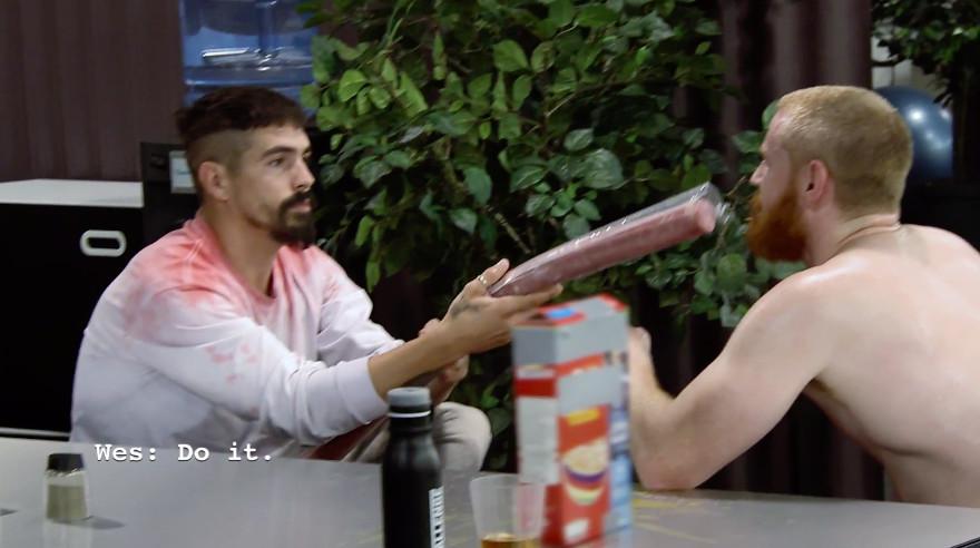 My first thought when this happened was, “Thank God, someone is finally telling Jordan to stop being so annoying.” But my second thought was, “Wait a minute—is that a gigantic stick of salami?” And just when I started to get disappointed that the massive tube of meat would never be addressed, it became a key part of the fight.