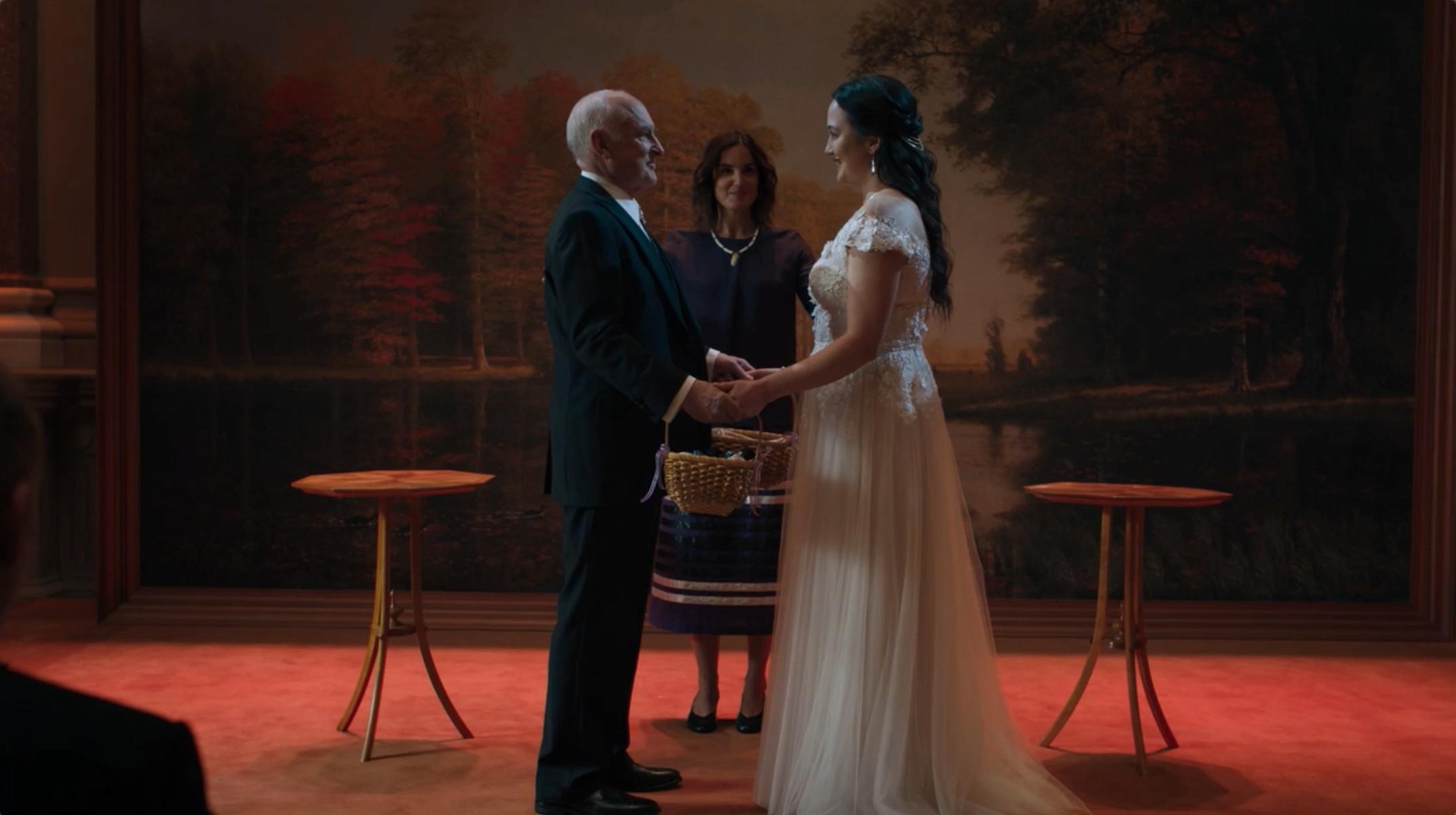 Last season, Chuck Sr. quote, “tasted the fruit,” of a Native American community in upstate New York and fathered a child. (Hint: the fruit refers to a woman’s vagina.) Chuck Sr. becoming a dad again was a bizarre, hilarious turn of events—and rather than push the situation off to the side and give it throwaway punch line status, Billions has our guy straight up marry his baby mama, Roxanne, in the opening scene of “The New Decas.”