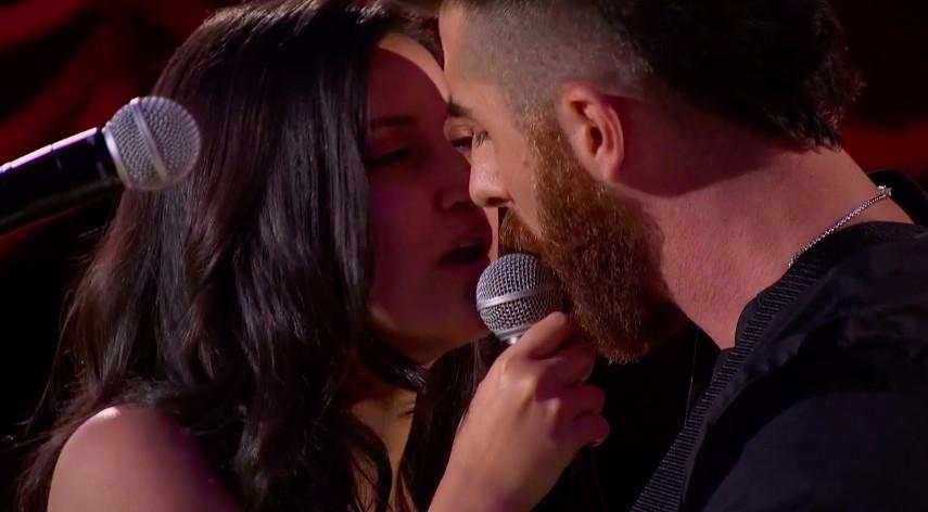 The couples are given two microphones to start their performances. (As Natascha demonstrated, this many microphones can be disastrous.) But as Bri and Chris reached the romantic climax of their song, the couple ditched their second mic and put their faces close enough to sing together into the same mic: