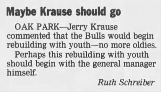 In the local paper, letter after letter to the editor reflected fans’ criticism of those they blamed for forcing apart the title-winning roster. One critic went after Krause with as much biting panache as Jordan himself could muster.